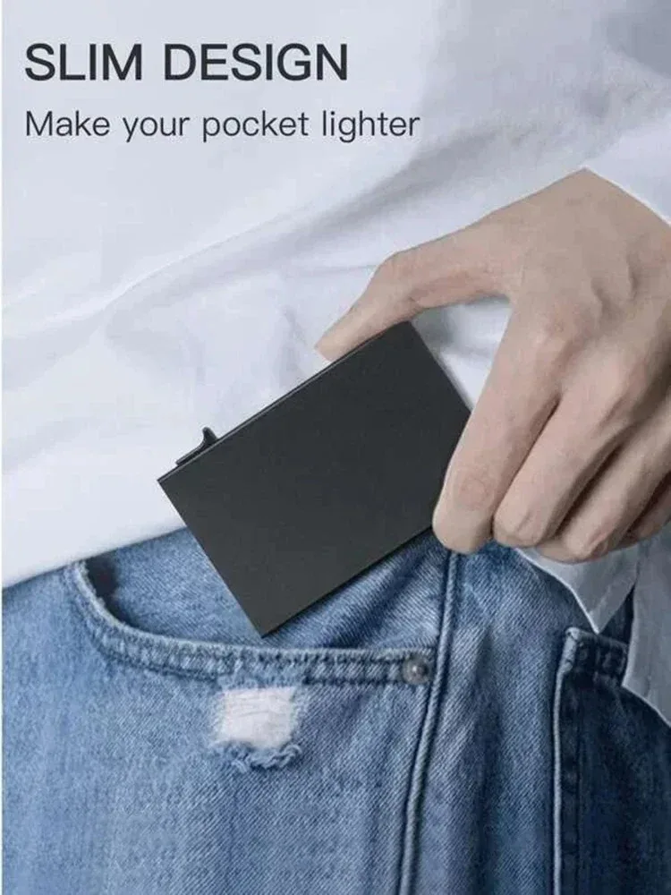 Experience the ultimate convenience and security with this Simplest Men's RFID Shielded Credit Card Wallet. Crafted from durable aluminum alloy, this minimalist card holder provides a sleek, stylish way to carry your essential cards. Its compact, box shape fits comfortably in your pocket or bag, making it ideal for daily use. The RFID shielding technology ensures your personal information remains protected from electronic theft. With a straightforward design, this unisex wallet combines fashion and function effortlessly, making it perfect for those who value simplicity and safety. Upgrade your everyday carry with this reliable and lightweight card holder, and enjoy peace of mind knowing your cards are safeguarded in style.