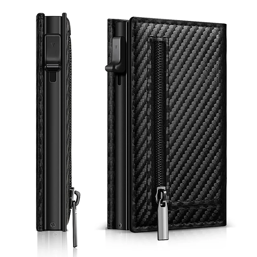 Keys features of this men's RFID carbon fiber wallet