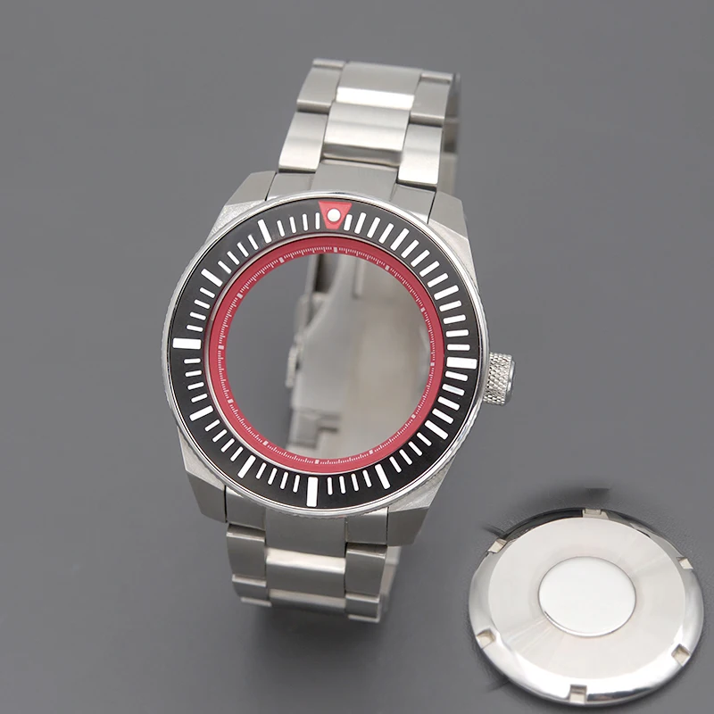 Immerse yourself in the precision and durability of this men’s watch case, crafted from high-quality 316L stainless steel with a polished finish. Measuring 45mm in diameter and 14mm thick, it features a scratch-resistant sapphire crystal glass, a sealed screw-in back cover, and a crown positioned at 3 o’clock for added functionality. The bezel insert has an outer diameter of 41mm and an inner diameter of 32mm, styled with a diver-inspired black insert and large white numerals. Fully waterproof up to 20ATM, it’s compatible with Japan automatic movements including NH35, NH36, 4R35, 4R36, 7S26, 7S36, and NH39, fitting 22mm straps for a personalized, robust look.