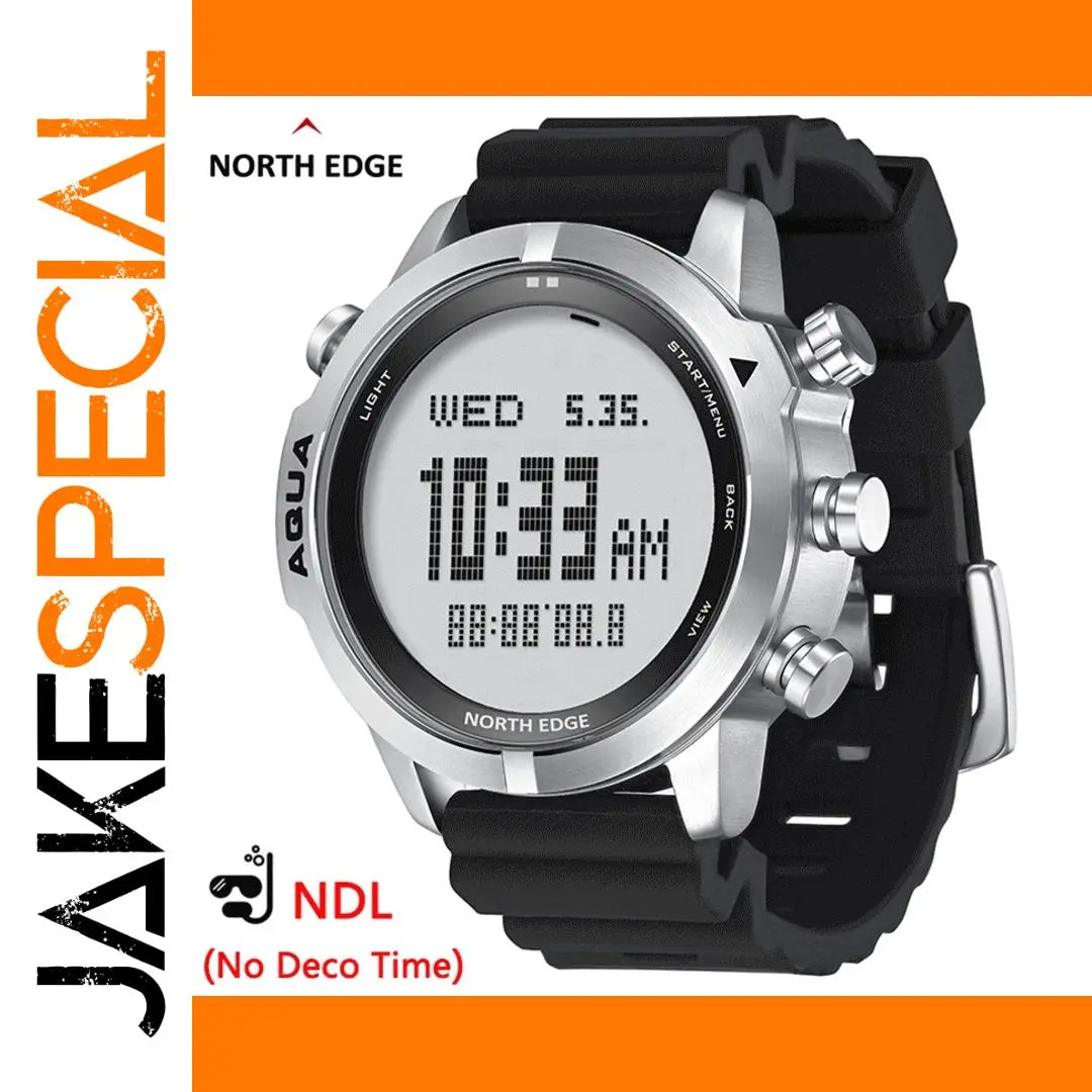 The NORTH EDGE Men's Professional Diving Computer Watch is an essential companion for divers and outdoor enthusiasts. Designed for scuba diving, it features multiple modes that display critical dive information such as depth, time, and compass direction. With its rugged construction, including a stainless steel case and silicone band, this watch is built to withstand harsh conditions. The backlit LED display ensures readability even in low-light environments. A variety of features such as altimeter, barometer, and temperature measurements make it an incredibly comprehensive tool for adventurers of all kinds. Experience unparalleled functionality and style with this dive watch during your underwater adventures.