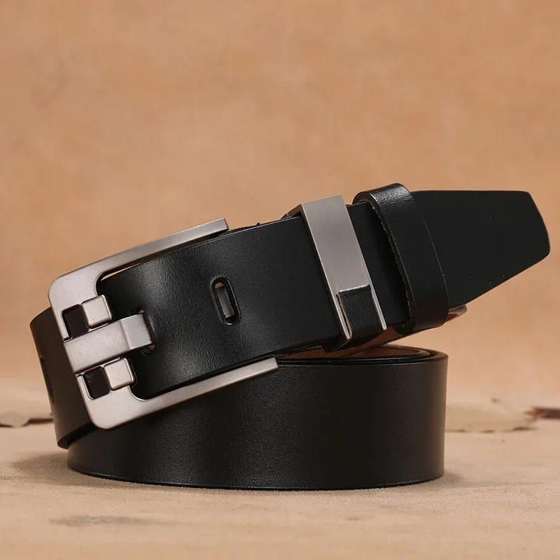 Experience the ultimate combination of durability and elegance with this men's belt, crafted from high-quality cow genuine leather. Available in classic black and rich dark brown, this belt is designed to enhance your wardrobe effortlessly. With a belt width of 3.8 cm, it strikes the perfect balance between robust and stylish. The buckle, measuring 4 cm by 7.5 cm, showcases a brushed silver finish that adds a touch of sophistication. Whether you're dressing for a casual outing or a formal event, this belt is the perfect accessory to elevate your attire.