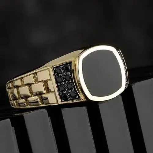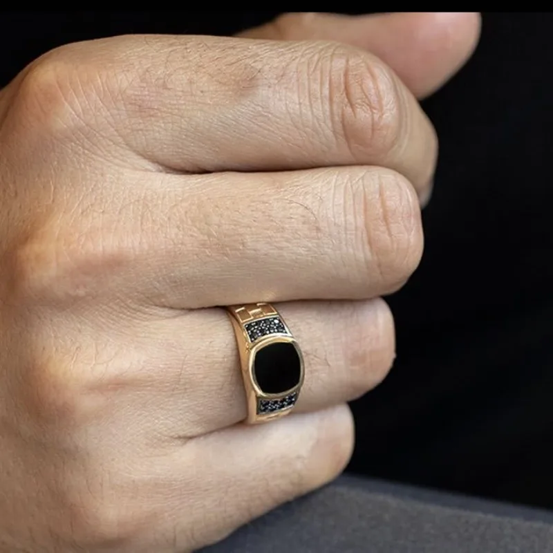 - Technical specifications: Zinc alloy material, geometric pattern, black stone inlay, cubic zirconia gemstone, sizes 7-13, gold and silver color options, fashionable trend style.
