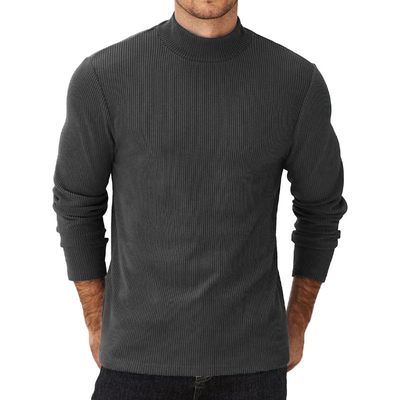 Imagine yourself wrapped in the warmth and style of this versatile men's mock turtleneck sweater. Designed for autumn and winter, it offers a cozy yet sophisticated look. The ribbed, high neckline gently extends upward, providing extra warmth and a polished appearance. Its classic knitted design features subtle striped patterns, adding a touch of texture without overwhelming the simplicity. The comfortable fit, with full-length fitted sleeves and a hem that falls just below the waist, makes it ideal for daily casual wear. Available in a variety of muted colors, you can easily match this sweater with your favorite jeans, trousers, or casual jackets. Elevate your wardrobe with this essential, timeless piece designed for comfort and style.
