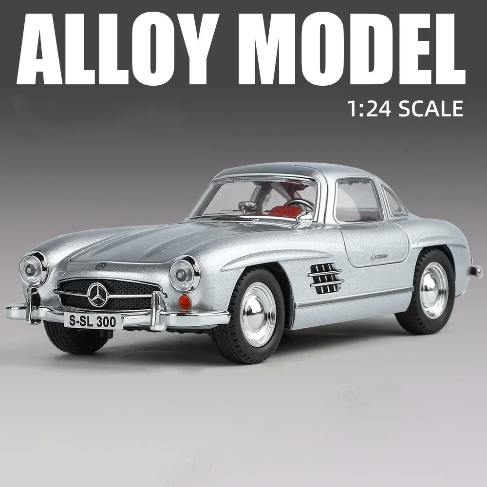 Experience the timeless elegance of this meticulously crafted 1:24 scale diecast car model, featuring iconic versions of the Mercedes-Benz 300SL and S400L. These models boast a realistic metallic body, detailed plastic chassis, and authentic rubber tires, capturing the classic curves and aerodynamic shape of vintage cars. With striking color options including white, black, silver, and vibrant green, they are perfect for collectors and enthusiasts. The models include dynamic sound and light effects, pull-back movement, and functioning doors that open to reveal a detailed interior. Their compact size makes them ideal for display, decoration, or as thoughtful gifts for mature collectors passionate about automotive history and design.