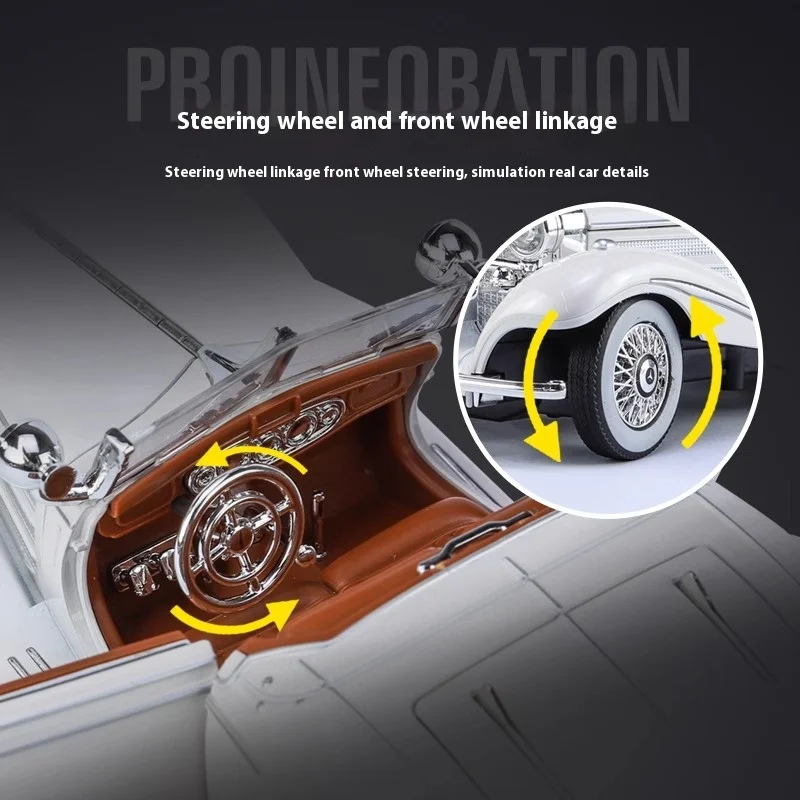 Add this stunning diecast model of the Mercedes Benz 500K to your collection today! With its elegant design and interactive features, it not only serves as a conversation starter but also brings a touch of classic automotive history to your space. Imagine showcasing this beauty on your shelf or surprising a fellow enthusiast with this remarkable gift. Elevate your collection with this exquisite piece that reflects timeless elegance and robust craftsmanship. Order now and let the charm of the classic car era enhance your home or office!