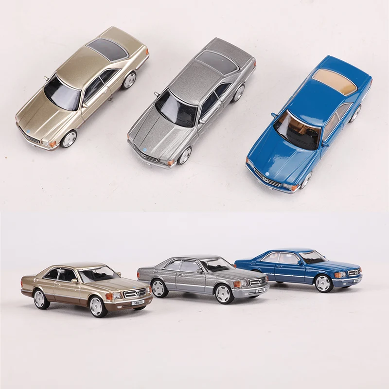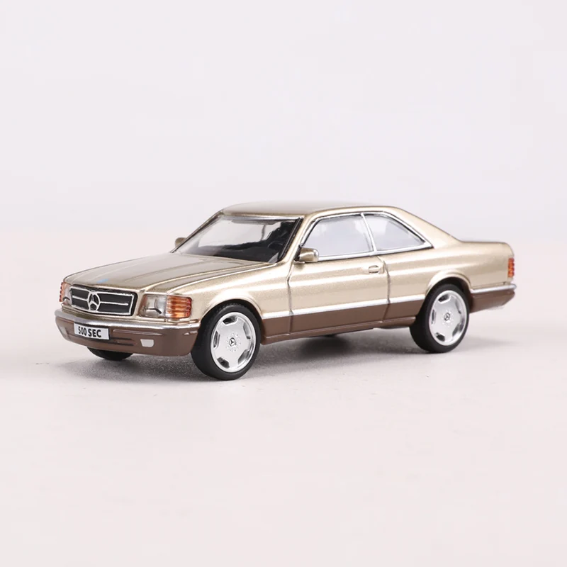 Experience the elegance and craftsmanship of this Mercedes-Benz 500SEC die-cast alloy model, expertly crafted at a 1:64 scale. Its sleek, aerodynamic profile features a glossy, metallic finish in a variety of shades including champagne, silver, vivid blue, black, and dark gray. The realistic details highlight sculpted lines, prominent front grille with a central star emblem, rectangular headlights, and molded seams that add authenticity. Each model reflects the luxury and refined style of the original, making it perfect for collectors or as a sophisticated gift. Its durable metal construction and polished surface provide a premium feel, allowing you to showcase or display this miniature masterpiece with confidence and pride.