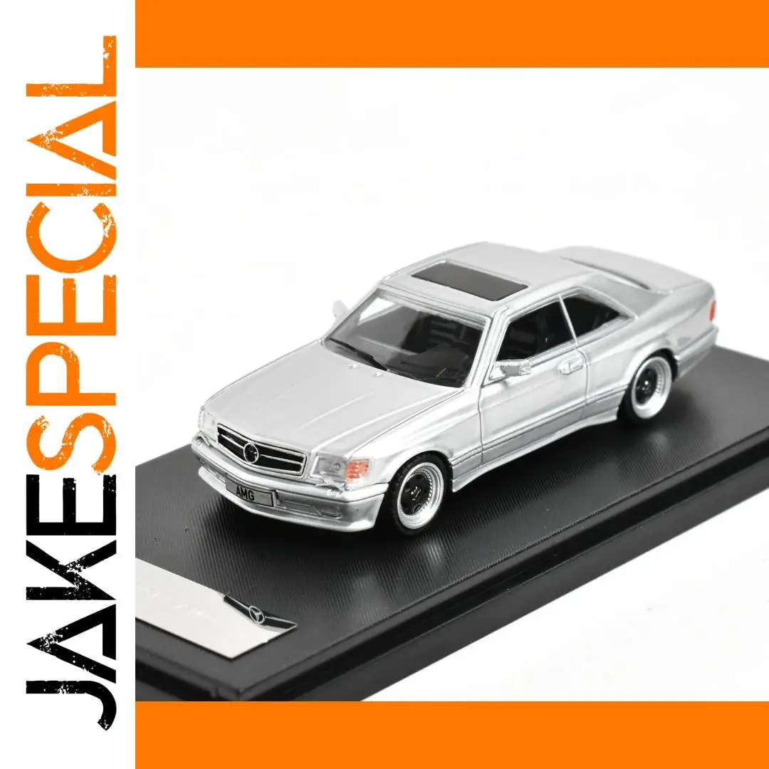 Experience the elegance of this highly detailed 1:64 scale diecast model car, representing the iconic Mercedes-Benz 560SEC W126 series. Crafted from durable metal, this replica captures every precise feature — from the sleek metallic silver finish to the finely molded panel lines and authentic design elements. The model's clear plastic windows reveal a detailed interior, while the realistic rubber tires with silver-trimmed black wheels mirror the original vehicle’s luxurious appearance. The front showcases translucent headlights with integrated orange turn signals, a bold grille with the Mercedes-Benz emblem, and a license plate marked “AMG.” Perfect for collectors or hobby enthusiasts, this model provides a sophisticated, upscale aesthetic that emphasizes craftsmanship and timeless style.