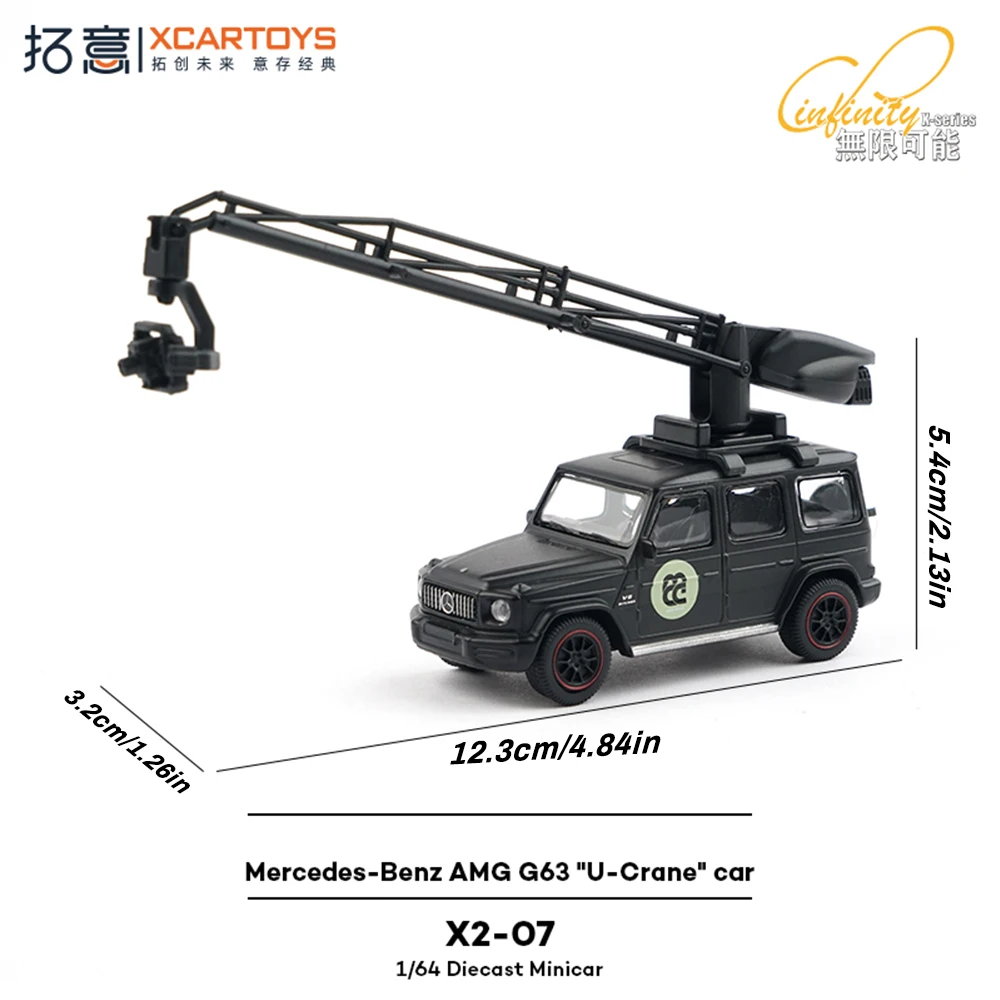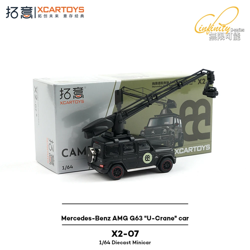 This stunning diecast model of the Mercedes-Benz AMG G63 is a must-have for collectors and car enthusiasts alike. Crafted at a 1/64 scale, this black beauty captures the robust and sporty essence of the original vehicle. Constructed from high-quality zinc alloy for the body and ABS plastic for durability, it features rubber wheels that enhance its realistic performance. The striking design includes a detailed front grille, clear plastic headlights, and unique black wheels with red accents. Plus, a mounted crane with a camera adds practicality to this stylish model. Every detail has been carefully considered, making it an excellent choice for any automotive aficionado.