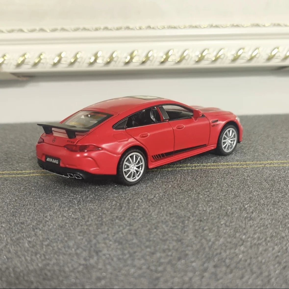 Imagine owning a stunning replica of the Mercedes-Benz AMG GT63, a true highlight for any collector or enthusiast. This 1:32 scale diecast model captures the sleek, aerodynamic curves and detailed features of the original sports car, bringing it to life in striking vivid red. With illuminated headlamps and finely crafted grille details, this model exudes high-end craftsmanship. The meticulously designed wheels and side vents add to its authentic appearance, making it a compelling display piece. Crafted from durable metal, it ensures long-lasting enjoyment. Whether displayed on a shelf or used as a showpiece, this miniature embodies sophistication and performance. Your passion for luxury cars becomes tangible with this highly detailed model.