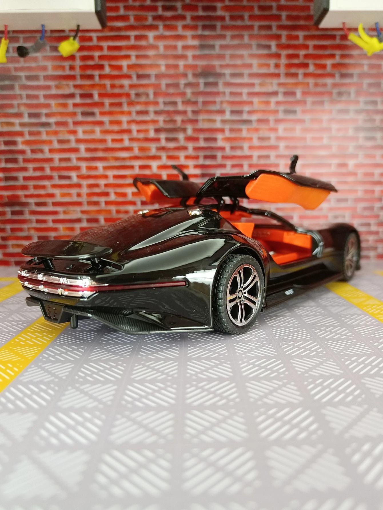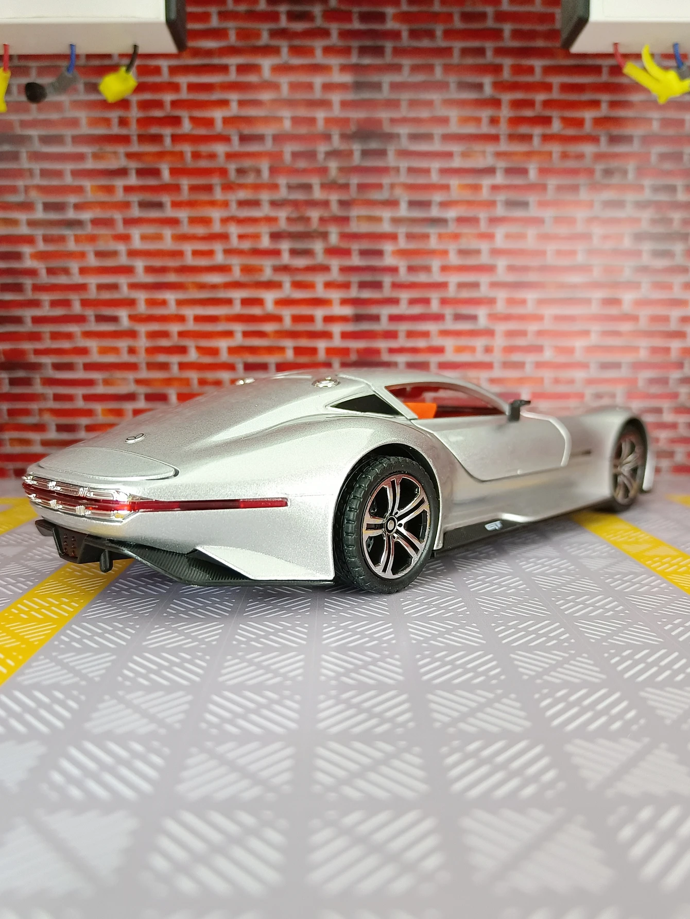 This stunning 1:24 scale diecast model of the Mercedes-Benz AMG Vision GT combines exceptional craftsmanship with high-tech features. Finished in a glossy black sheen, this model highlights the visionary design of the original car. The meticulously detailed front grille, sharp illuminated headlights, and smooth aerodynamic contours reflect the essence of high-performance vehicles. Meanwhile, the vibrant red dashboard interior contrasts beautifully against the sleek exterior, adding a touch of luxury. Enhanced with sound and light simulation, this model offers an interactive experience that draws you in. Every detail, from the large alloy wheels to the durable metal construction, is designed to captivate both collectors and enthusiasts alike.