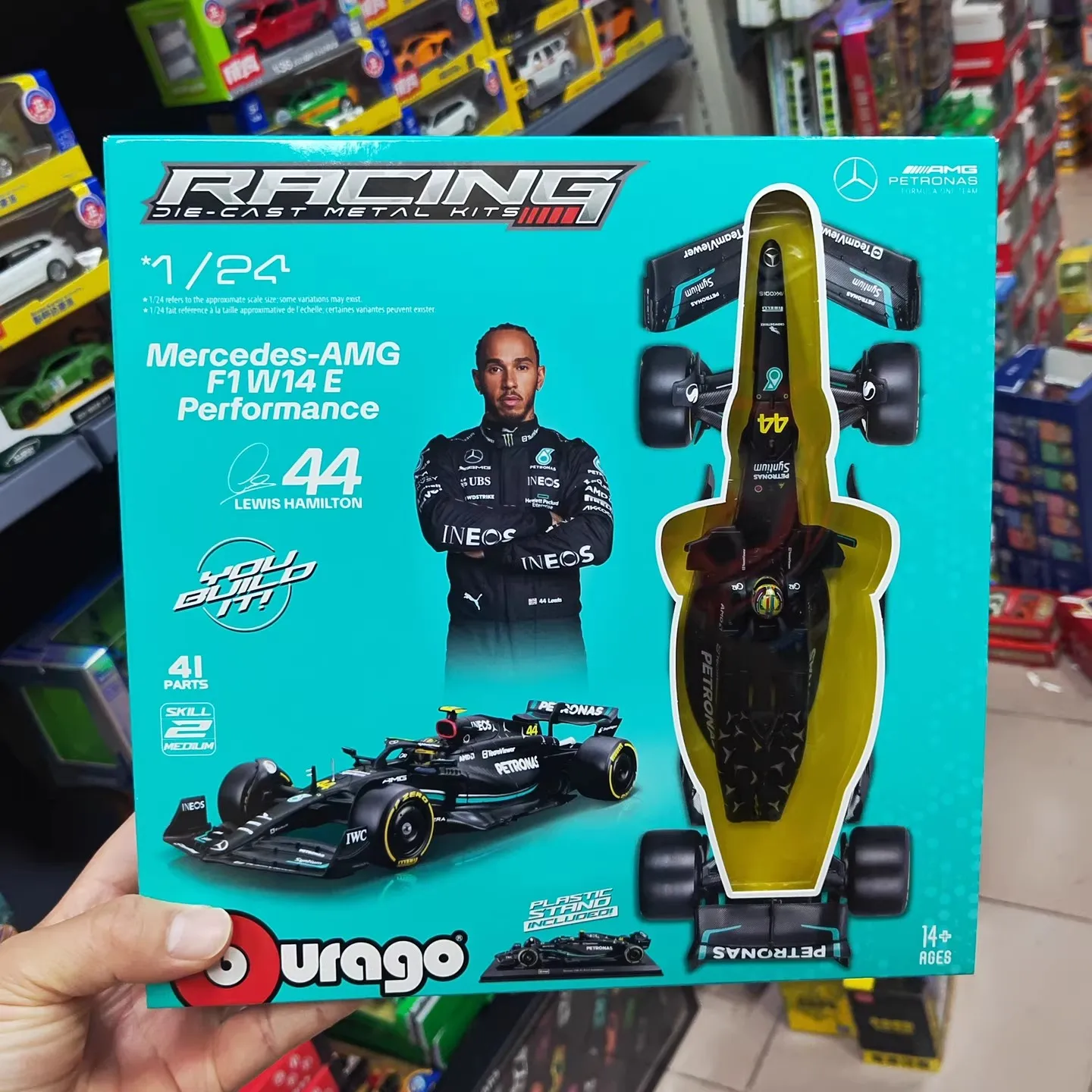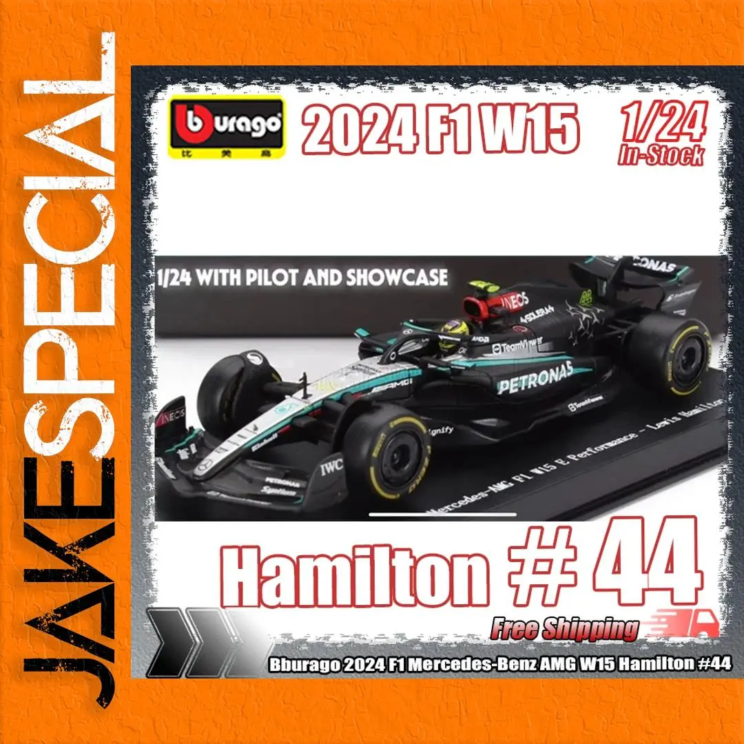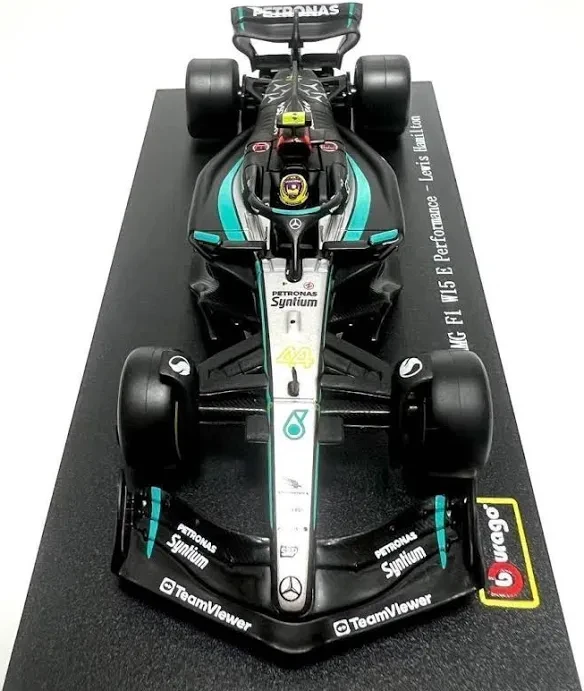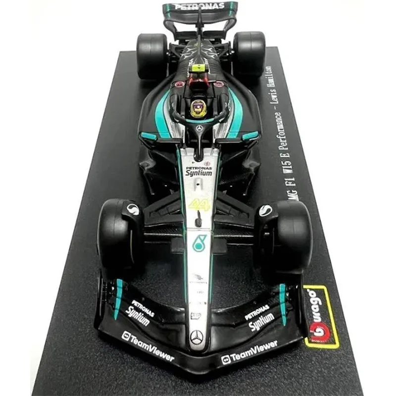 - This diecast metal model replicates the Mercedes-Benz AMG W15 Formula 1 car with high precision, offering a sleek aerodynamic profile in a 1:24 scale for detailed display and collection.