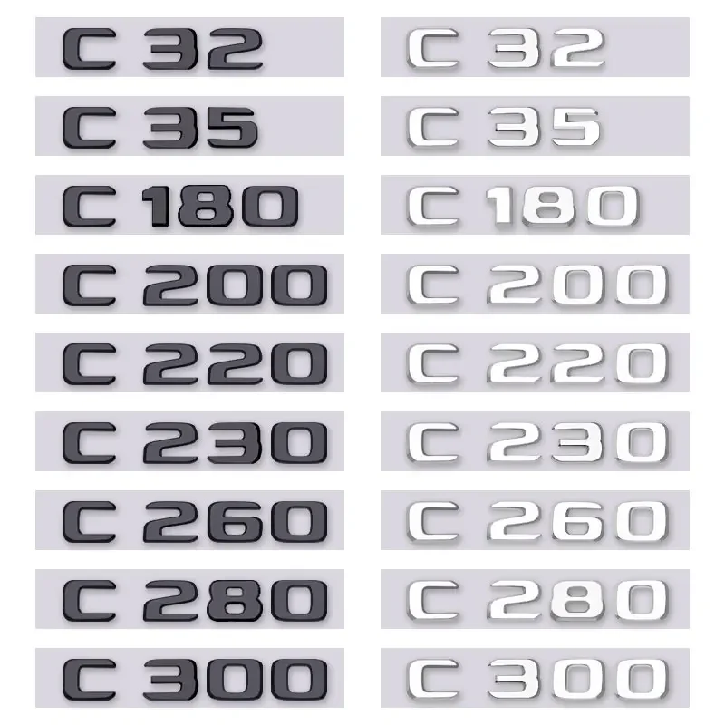 Transform the look of your Mercedes-Benz C-Class with this premium badge sticker, perfectly designed to add a sleek, customized touch to your vehicle's rear. Crafted for an impeccable finish, it features high-quality ABS material available in three striking colors: chrome, bright black, and matte black. Choose between the stylish 2D flat or sharp 3D styles to match your personal taste. This sticker seamlessly fits the entire car body, especially suitable for the rear boot trunk displacement label. Its modern font and polished surface provide a luxurious, reflective appearance that enhances your car’s sophistication. Easy to install and durable, this badge elevates your vehicle’s aesthetic appeal, making it stand out with subtle elegance that speaks to your style.