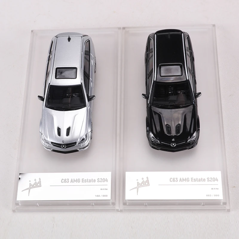 Experience the thrill of owning this meticulously crafted diecast model of the Mercedes-Benz C63 AMG Estate S204. Showcasing sleek, realistic design at a 1:64 scale, this collectible captures every detail, from the elegant body lines to the accurately designed front grille with the iconic Mercedes-Benz emblem. The glossy metallic silver finish highlights the vehicle's contours, while the black version offers a sophisticated, sleek appearance. Both models feature multi-spoke silver wheels with visible brake calipers, subtle roof rails, rear spoilers, and detailed headlights, mirrors, and door handles, all reflecting the high-quality craftsmanship. Perfect for display or as a gift, this model will bring your collection to life with its precision and authenticity.
