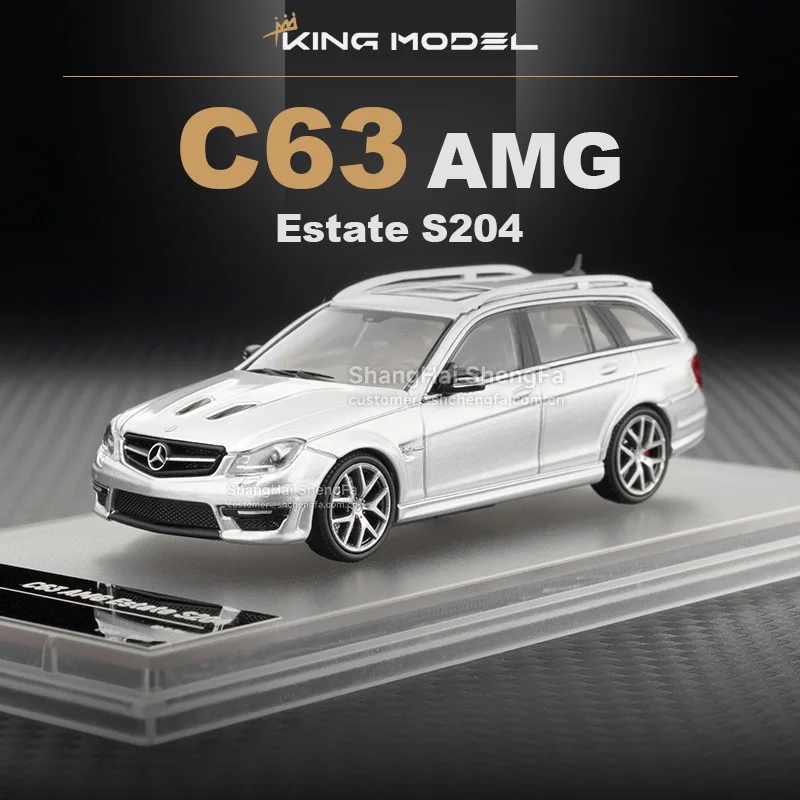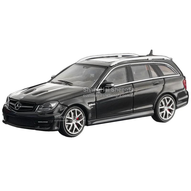 Experience the luxury of the Mercedes-Benz C63 AMG Wagon with this highly detailed 1:64 scale diecast model in sleek metallic silver. Crafted from durable metal, it features intricate multi-spoke alloy-style rims, a chrome-accented front grille, clear detailed headlights, and realistically molded side mirrors and door handles. The overall design captures the authentic proportions, aerodynamic contours, and elegant roof rack of the actual vehicle, making it an ideal collectible for enthusiasts. Non-electric and battery-free, this model is perfect for display, adding a refined, high-end touch to your collection. Elevate your admiration for automotive craftsmanship with this meticulously designed replica.