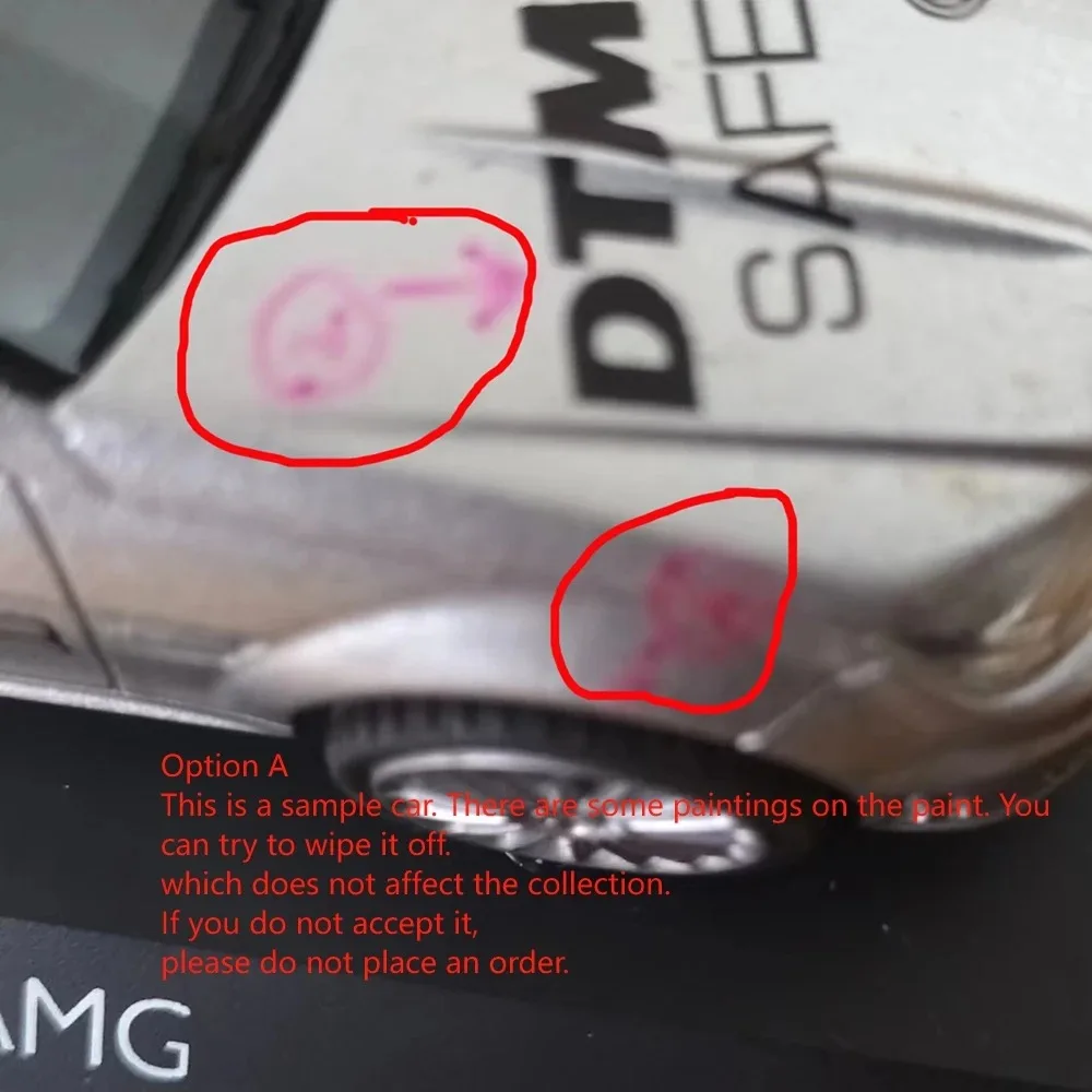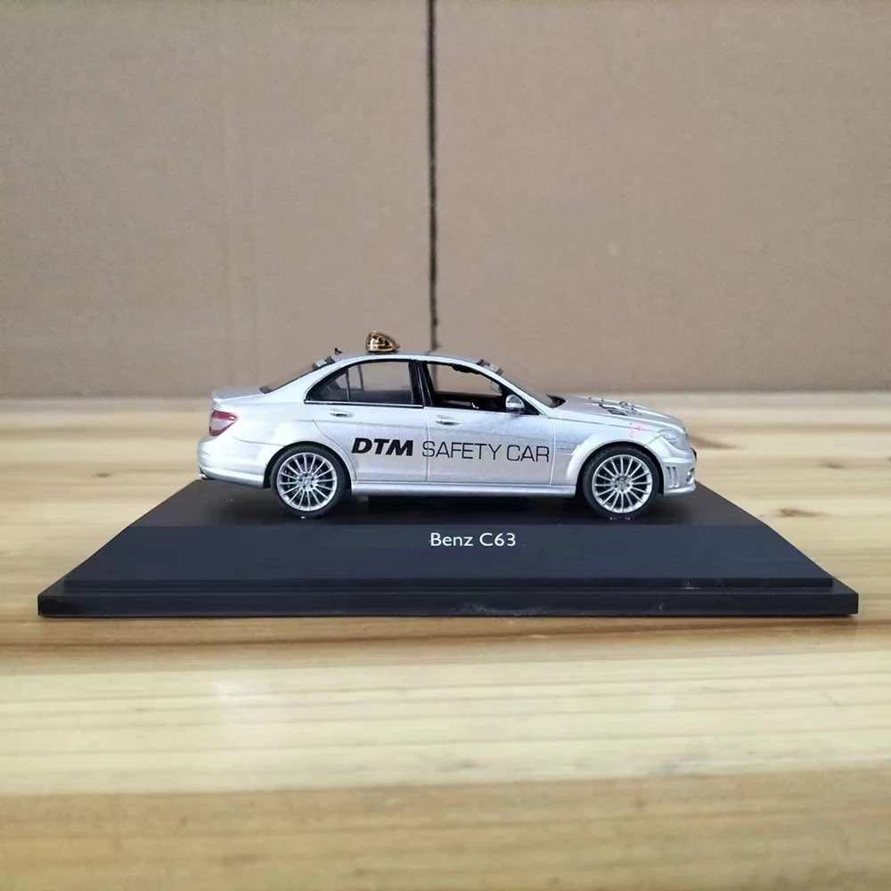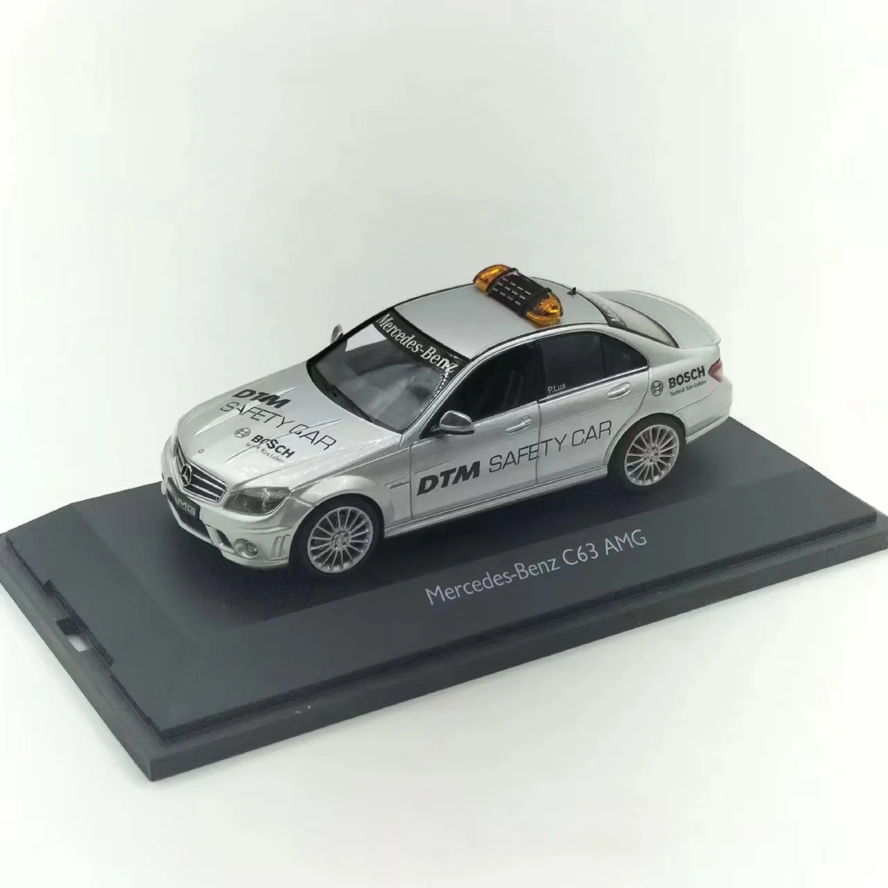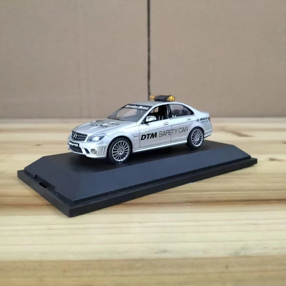 Experience the sleek elegance of this meticulously crafted die-cast alloy model of the Mercedes-Benz C63 SUV DTM Safety Car. Standing approximately 10.5 centimeters long, 4.2 centimeters wide, and 3.5 centimeters tall, this collectible captures the dynamic design and racing-inspired aesthetics of the real vehicle. The exteriors feature a polished silver finish, with striking black markings on the sides and hood that enhance its visual appeal. Crafted from high-quality alloy, plastic, and rubber, it boasts real rotating wheels, tinted windows, and detailed front grille, headlights, and taillights, adding realism and sophistication. Despite minor paint imperfections and some dust, the overall finish highlights its authenticity, making it an impressive display piece for any enthusiast or collector.