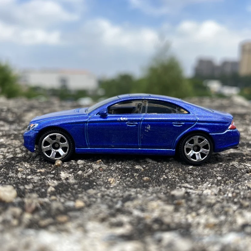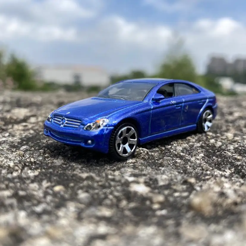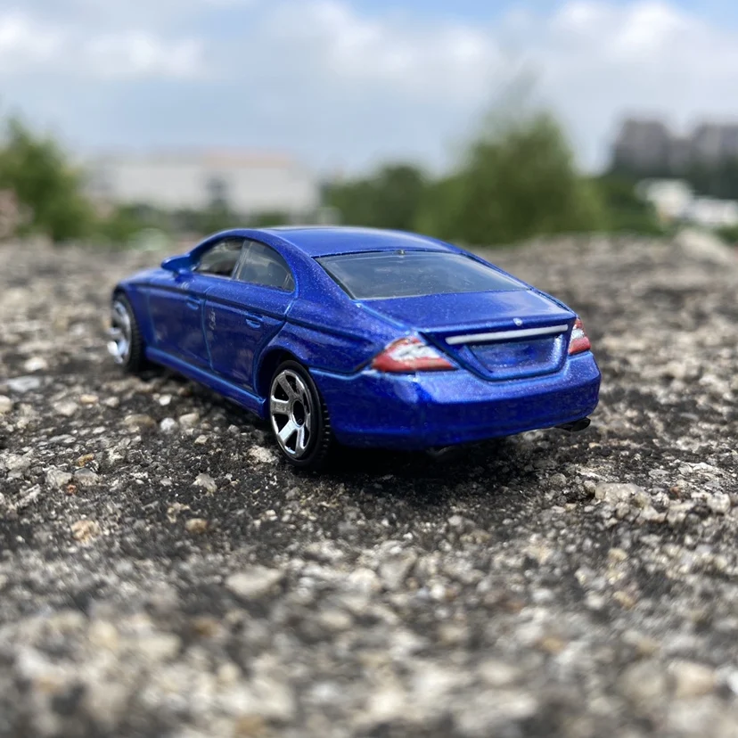 - The vibrant metallic blue paint emphasizes a sleek and bold aesthetic, closely mirroring the elegance of the actual Mercedes-Benz CLS500 sedan.