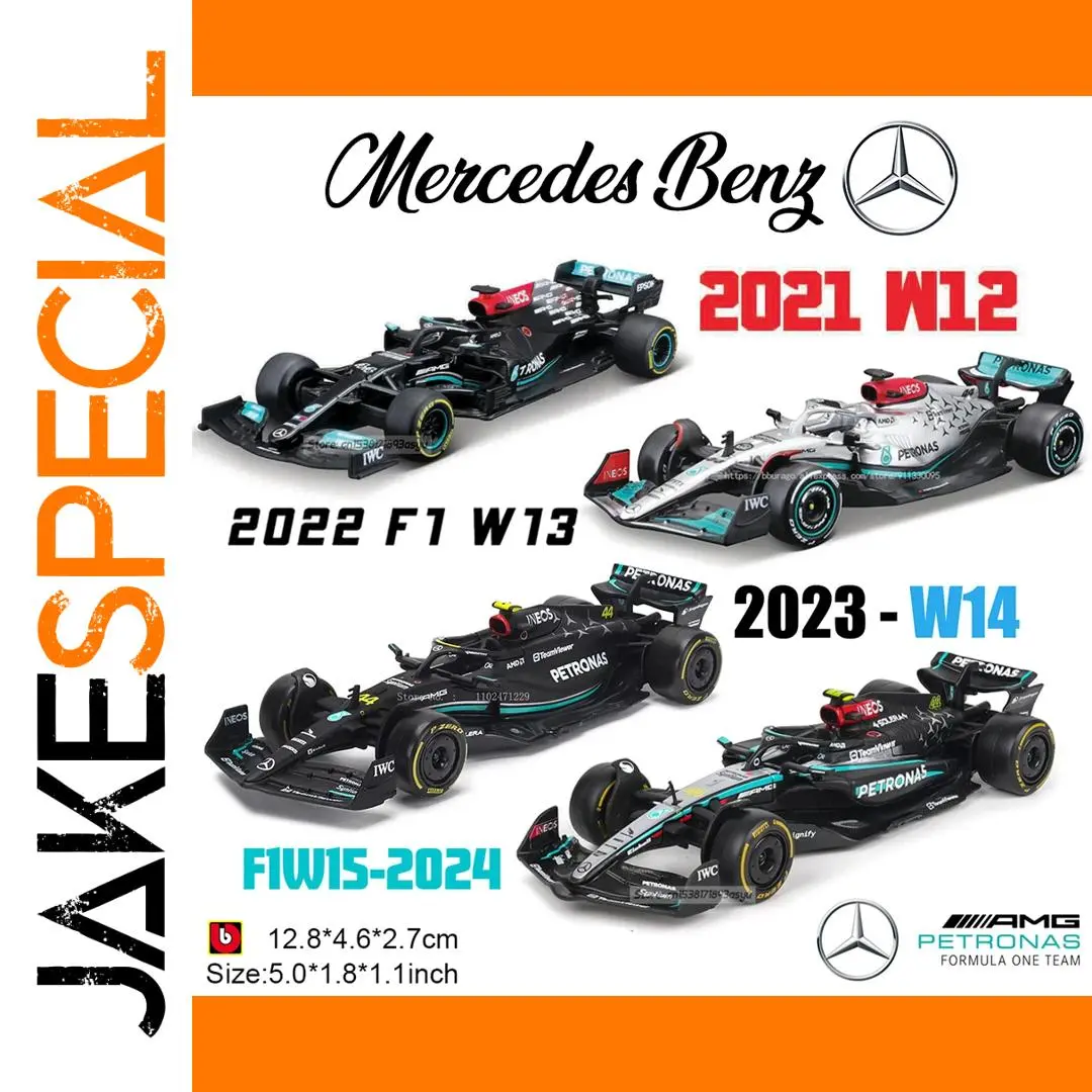 Experience the thrill of Formula 1 with this exclusive collection of detailed Mercedes-Benz F1 car models, meticulously crafted in 1:43 scale. Each model captures the sleek aerodynamic design, bold color schemes, and intricate sponsor details that define the high-performance racing cars from 2021 to 2024. Whether you're a passionate collector or a dedicated motorsport enthusiast, these models bring the excitement of race day into your display. Crafted from high-quality zinc alloy, ABS plastic, and rubber tires, they offer durability and stunning realism. The models boast carefully reproduced wing structures, sponsor decals, and vibrant color accents, making them true showpieces. Perfect for display, they add a touch of racing elegance to any collection.