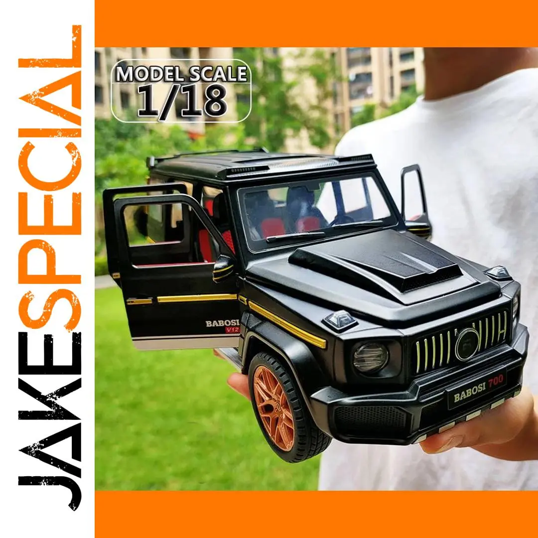 Experience the thrill of owning a realistic replica with this meticulously crafted 1:18 scale diecast model of the Mercedes-Benz G700 SUV. Its sleek, black matte finish gives it a rugged yet sophisticated look perfect for display or collection. The model features a prominent grille with vertical slats and a central Mercedes-Benz emblem, complemented by angular headlamps and a raised, sculpted hood with vents that highlight its off-road spirit. The side profile is accented by a horizontal gold stripe, contrasting beautifully with its dark exterior. With detailed mirrors, rugged bumper design, and rubber tires with multi-spoke bronze rims, this model exudes authenticity. An impressive balance of craftsmanship and interactivity makes this piece truly eye-catching.