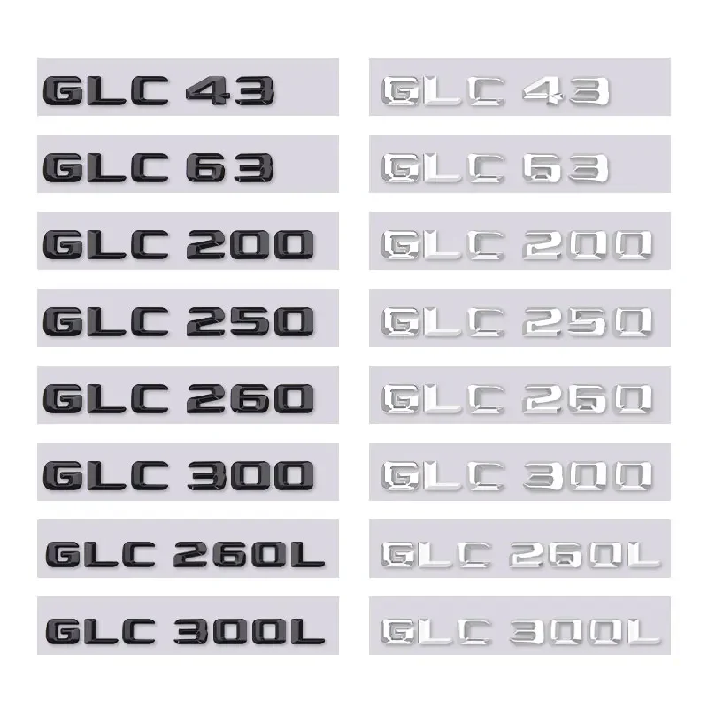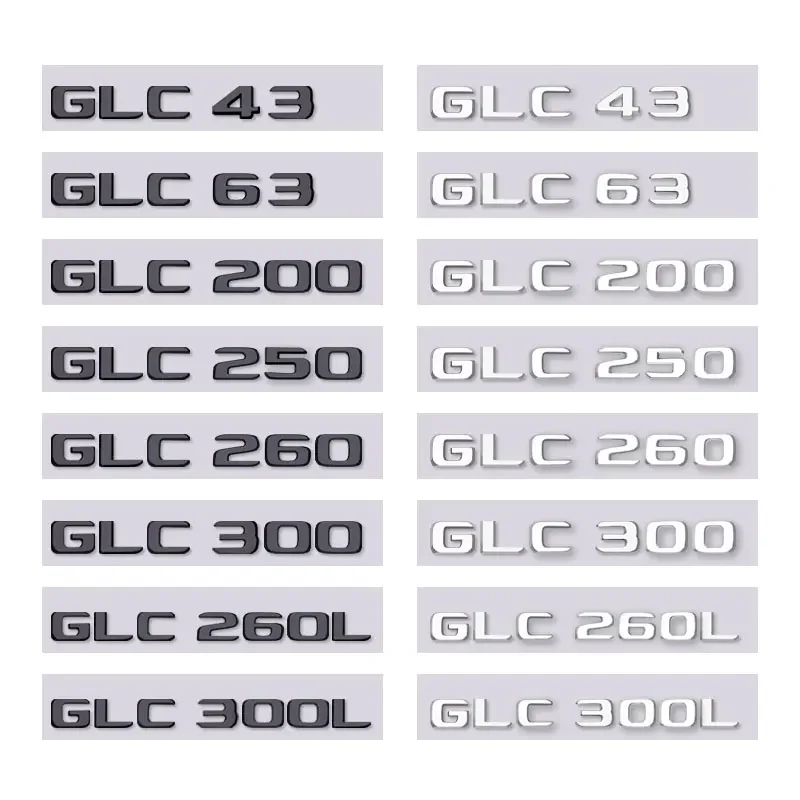 Enhance your Mercedes-Benz GLC with this high-quality sticker set designed to fit models including GLC43, GLC63, GLC200, GLC250, GLC300, GLC260, GLC260L, and GLC300L. Crafted from durable, chemical-free materials, the set features customizable word or letter labels available in bright black, chrome, or matte black, with 2D flat or 3D sharp styles. Perfect for rear boot or trunk branding, these stickers offer a sleek, refined finish that complements your vehicle’s modern design. Easy to apply and long-lasting, this set provides a sophisticated upgrade to personalize your GLC series with elegance and durability.