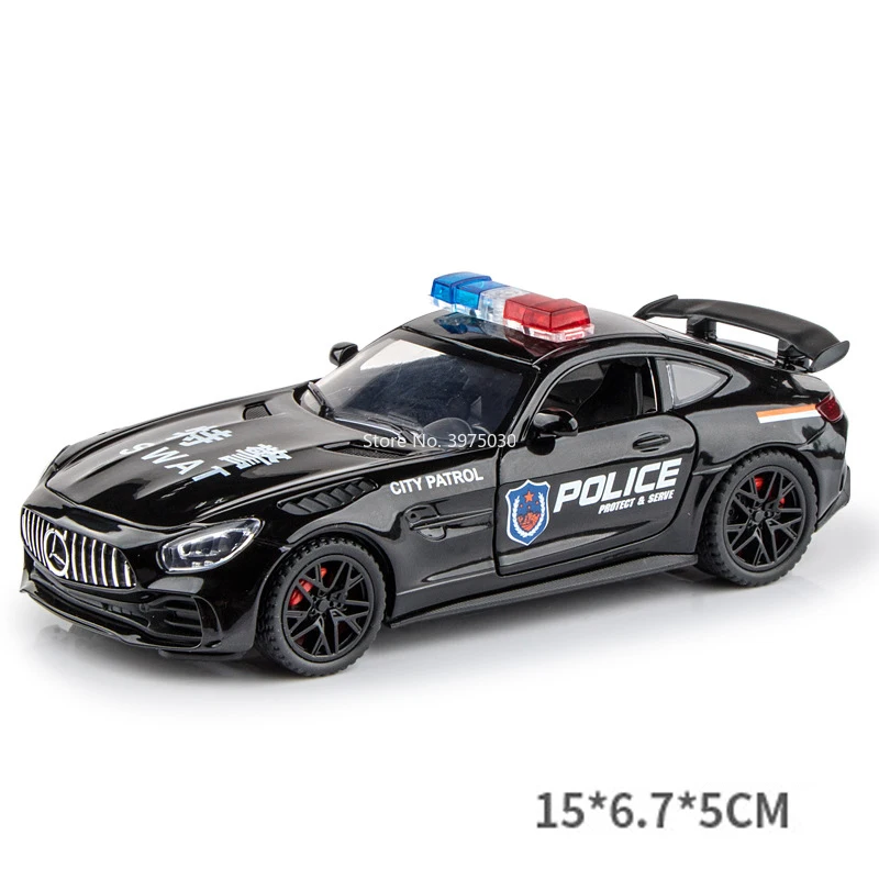 Step into the thrill of racing with this meticulously crafted miniature of the Mercedes-Benz GT3 GTR. Designed for enthusiasts and collectors, this 1:32 scale model captures the sleek, aerodynamic lines and sporty aesthetic of the original high-performance race car. The stunning matte black finish with bold red accents on the sides enhances its aggressive look and visual appeal. The detailed features such as the front grille, internal headlight intricacies, transparent racing seats, and a rear spoiler make it a true collector's item. Its lightweight zinc metal body combined with durable plastic chassis and rubber tires ensures longevity and realism. Perfect for display or imaginative play, this miniature embodies speed, precision, and craftsmanship.