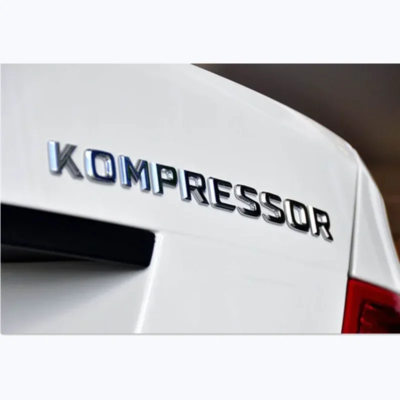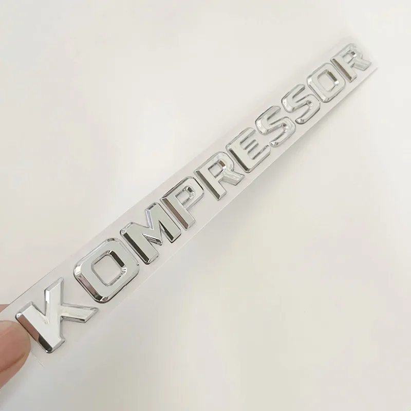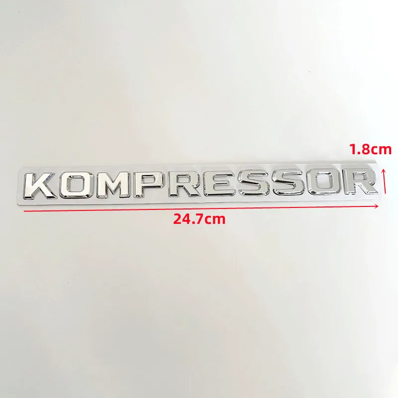 Transform your vehicle’s appearance with this sleek Mercedes-Benz Kompressor emblem badge. Crafted from durable ABS plastic with a polished chrome finish, it offers a shiny, reflective surface that mimics metal for a premium look. The rectangular shape features the bold, three-dimensional “KOMPRESSOR” lettering, evenly spaced and aligned horizontally, adding a striking yet refined visual element. Its smooth, glossy finish enhances the modern, minimalist style, making your car stand out with a touch of sophistication. Designed for easy application, this badge seamlessly attaches to the rear boot of various Mercedes-Benz models, elevating your vehicle’s branding and aesthetic appeal instantly.