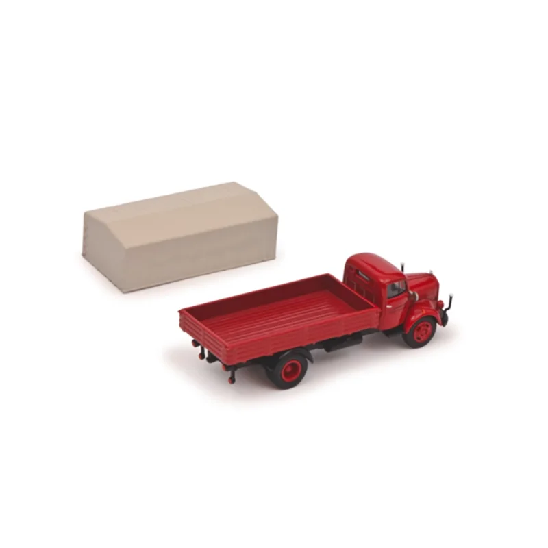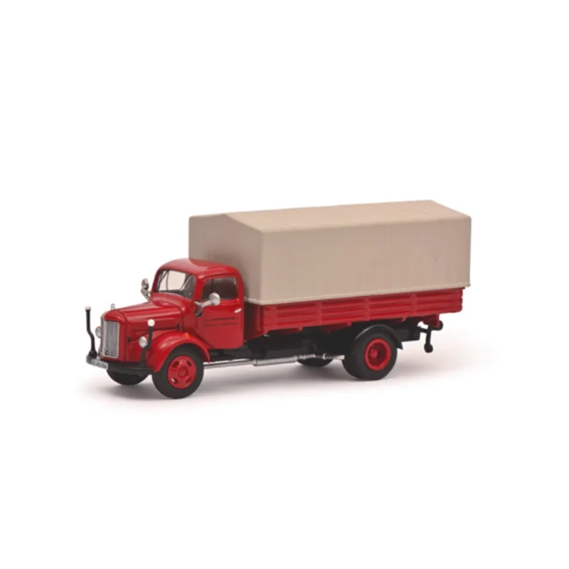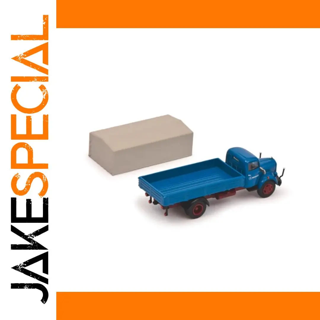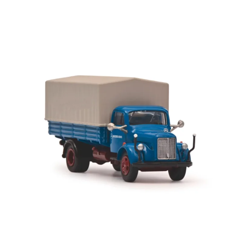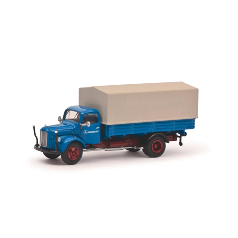 Experience the classic charm of the Mercedes-Benz L3500 with this meticulously detailed 1:87 scale diecast model, crafted from alloy and plastic. Featuring a vibrant blue color with a slightly darker cab and lighter cargo bed, this vintage tarpaulin truck showcases smooth, rounded contours, realistic windows, side mirrors, and subtle headlights. The open flatbed with vertical side panels and grooved interior enhances its authenticity, while the red-chromed chassis and small black tires with red rims add contrast and realism. Designed exclusively for collectors, this finished static display offers precise proportions and durable construction, making it an excellent addition to any collection of vintage vehicle models.