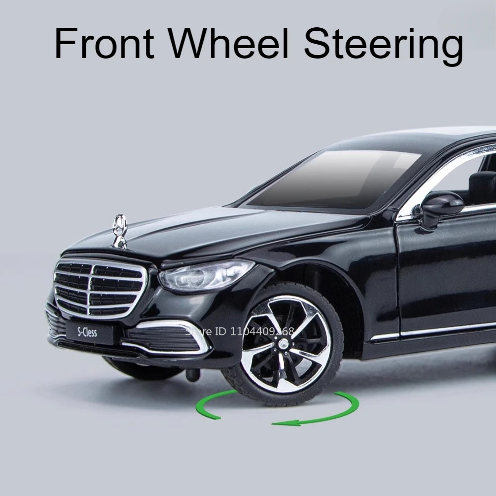 Experience the luxury and precision of the this Mercedes-Benz diecast model collection, designed for discerning collectors and passionate enthusiasts. Whether you're showcasing it on a shelf or adding to your collection, these detailed models bring the elegance of the Mercedes-Benz S-Class and GLE350 into your space in a realistic and refined way. Available in an array of captivating colors such as silver, green, blue, white, and black, these models embody sophistication with their sleek curves and authentic features. Measuring approximately 23cm for the S400L and 20cm for the GLE350, they reflect true-to-life proportions. Crafted from durable alloy, plastic, and rubber, they withstand display wear while maintaining their aesthetic appeal. These models also feature functional doors, realistic sound and light effects, and pull-back motors, enhancing your interactive experience.