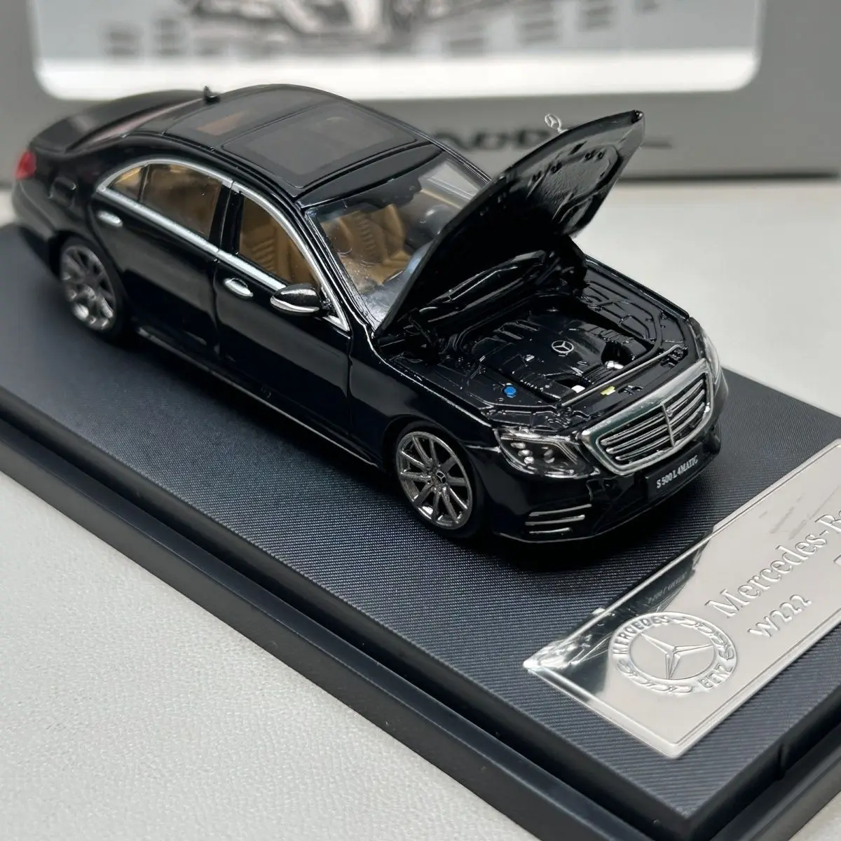 Imagine adding this highly detailed diecast replica of the Mercedes-Benz S500L W222 to your collection. Crafted with precision, this 1:64 scale model measures about 7cm long and features a sleek, glossy black finish that highlights its elegant and sophisticated silhouette. The intricate design captures the luxury of the real vehicle with carefully replicated grille, headlights, and chrome accents on door handles, window trim, and side mirrors. The multi-spoke alloy rims and rubber tires provide a realistic sporty touch. Ideal for collectors and enthusiasts, this model combines high craftsmanship with durable alloy and plastic materials, making it a durable and eye-catching piece to elevate your display or gift to a fellow car lover.