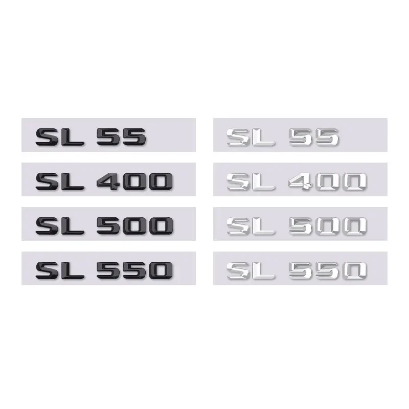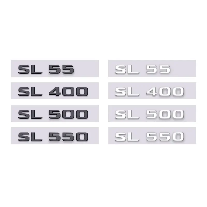 Enhance your Mercedes-Benz SL-Class with this premium sticker decal, tailored specifically for models like SL55, SL400, SL500, and SL550. Crafted with sleek design and durability in mind, this decal seamlessly sticks onto the rear boot’s smooth surface, adding a touch of sporty elegance. Available in two visual styles—2D flat and 3D sharp—alongside three colors: bright black, chrome, and matte black—you can perfectly match your vehicle’s aesthetic. The bold, modern lettering of the “SL” and model number creates a distinctive look that accentuates your car's luxury and performance. Easy to install, this decal will feel like an original part, elevating your vehicle’s overall appearance.
