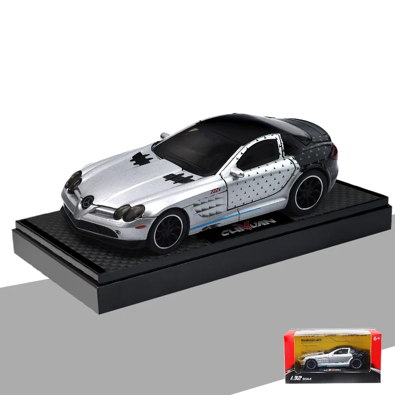 - This 1:32 scale die-cast model is made from durable alloy with a stunning metallic silver finish for a luxurious look. Its aerodynamic shape emphasizes speed, with intricately detailed curves and vents demonstrating high craftsmanship.
