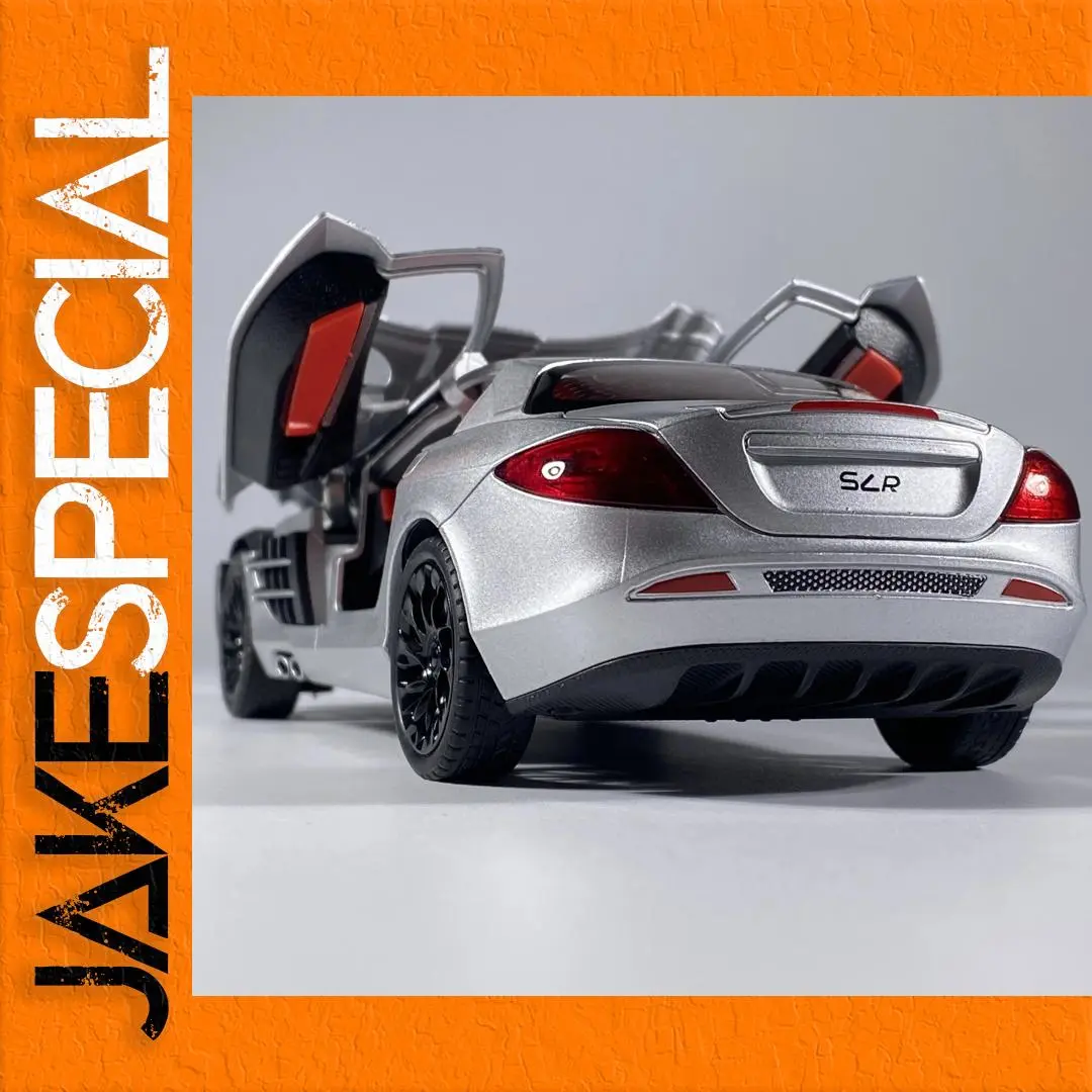 This stunning 1:24 scale diecast model of the Mercedes-Benz SLR McLaren 722 Supercar is meticulously crafted for enthusiasts who appreciate high-performance vehicles. The meticulous design showcases a sleek silver metallic finish that highlights the car’s aerodynamic curves and sharp lines. The striking red taillights and a distinctive black mesh grille accentuate the sporty look, while uniquely designed black alloy wheels add sophistication. Open the gullwing doors to reveal a gorgeous interior with luxurious red and black accents. This model is not just a display piece; it embodies the spirit of automotive excellence and fit for collectors who value craftsmanship and style.