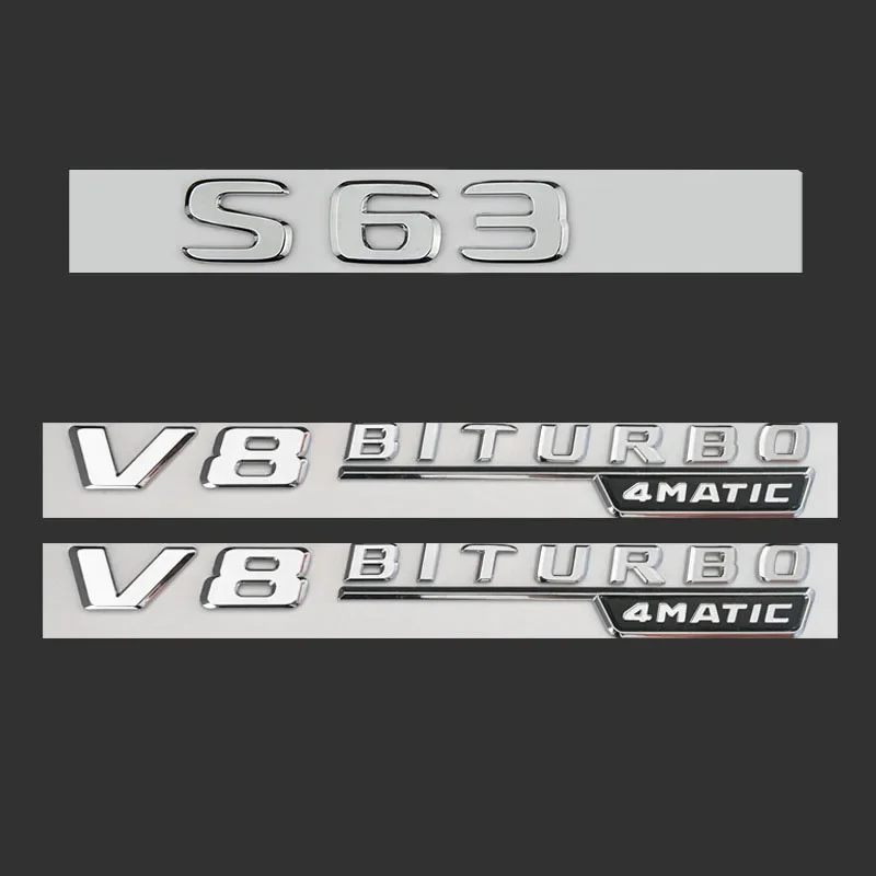 Transform your Mercedes-Benz with this sleek, high-quality ABS silver emblem designed for models like S63, S65, V8 B 4MATIC, and V12 BITURBO. Crafted with attention to detail, these emblems enhance your vehicle's luxury appeal, offering a polished, professional look. The smooth, raised, metallic silver characters reflect light beautifully, creating a striking contrast against dark backgrounds. Perfectly matching original car dimensions, they integrate seamlessly onto your fender or trunk, giving your vehicle a custom and refined appearance. Made from durable ABS material, these emblems are resistant to weather and wear, promising long-lasting elegance. Elevate your car’s style and display your model pride with this sophisticated accessory, easy to install and designed for passionate Mercedes-Benz owners.