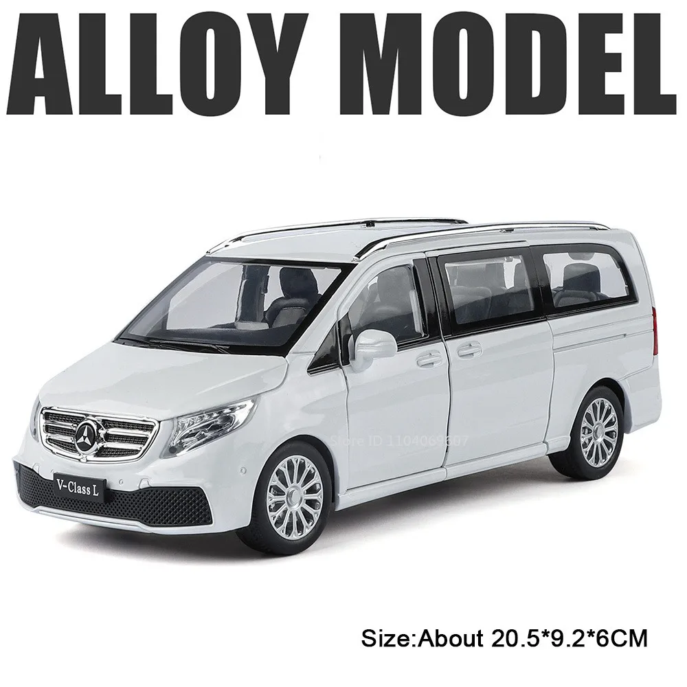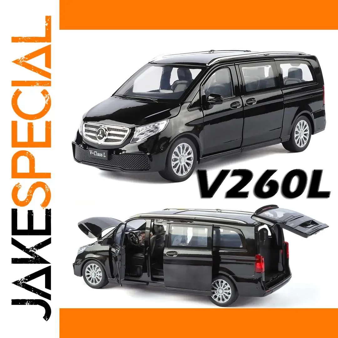- The model measures approximately 20.5 x 9.2 x 6 cm, with a glossy black finish for a premium look, replicating the real Mercedes-Benz V260L in stunning detail.