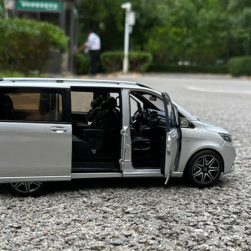 Enhance your collection with this highly detailed 1:18 scale diecast model of the Mercedes-Benz Viano MPV V-Class, crafted from metal for durability and authenticity. Available in sleek metallic silver and pristine white, this model features realistic design elements such as a prominent front grille with horizontal slats, intricately molded headlights with black detailing, tinted windows with black accents, and multi-spoke alloy wheels with silver accents. Emphasizing both luxury and practicality, the model’s smooth contours and precise lines faithfully replicate the real vehicle’s profile. Suitable for enthusiasts aged 14 and above, it’s an ideal addition to any collector’s holiday gift collection.