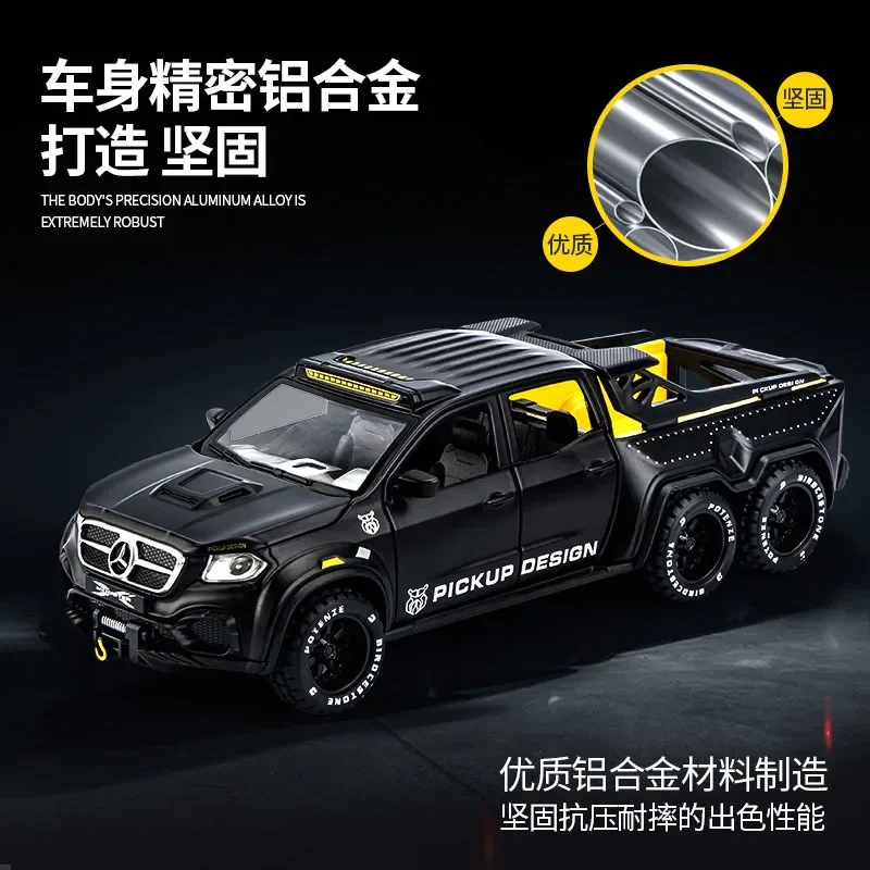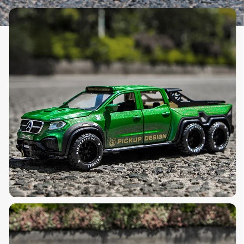 - Authentic Mercedes-Benz X-Class Exy 6×6 design in a 1:28 scale, emphasizing details like grille, vents, and subtle panel lines for realism.