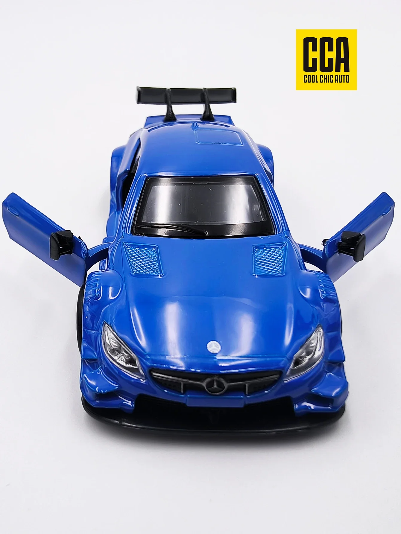 Experience the thrill of automotive elegance with this exquisite die-cast model car, finished in a stunning Mercedes-Blue hue. The aerodynamic design captures the essence of high-performance vehicles, making it a standout piece for collectors and enthusiasts alike. With its sleek front and luxury-inspired grille, complete with clear headlights, this model exudes realism. The racing-style wheels and pronounced rear spoiler emphasize its sporty aesthetic. Crafted from durable alloy, this model is built to last and is ready for display straight out of the box. Perfect for mature collectors, this elegant piece is bound to become a focal point in any collection.