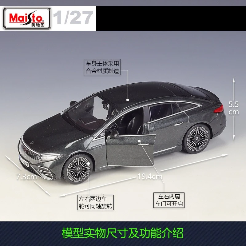 - Designed in a 1:25 scale ratio, providing a highly detailed and proportionate representation of the 2022 Mercedes EQS for display or collection purposes.