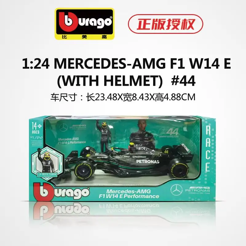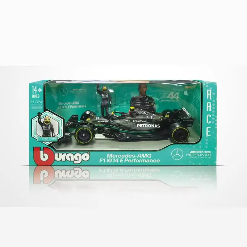 Experience the thrill of Formula One racing with this detailed Bburago 1:24 scale model of the 2023 Mercedes Amg W14 driven by Lewis Hamilton and George Russell. Crafted with precision, this diecast alloy toy captures every design element of the real race car, making it perfect for enthusiasts and collectors alike. Imagine having this sleek, high-quality model displayed proudly in your collection, reflecting your passion for motorsport. Its realistic proportions and fine detailing will make you feel as if you're right there on the racetrack. Whether for display or gift, this model is a must-have for any F1 fan eager to showcase their love for the sport and the Mercedes team’s latest racing masterpiece.