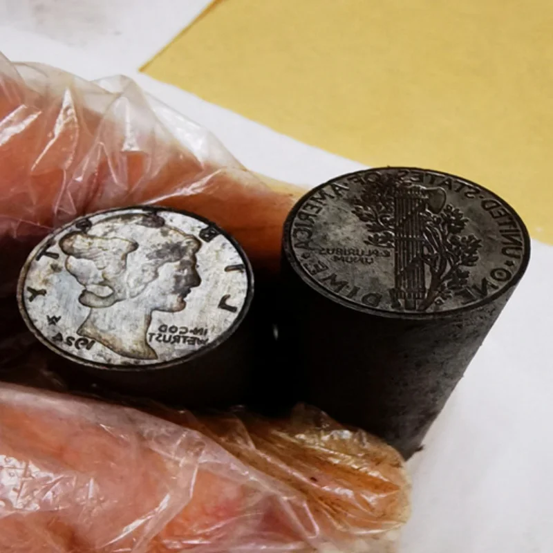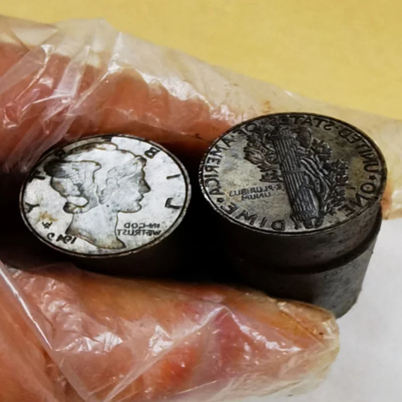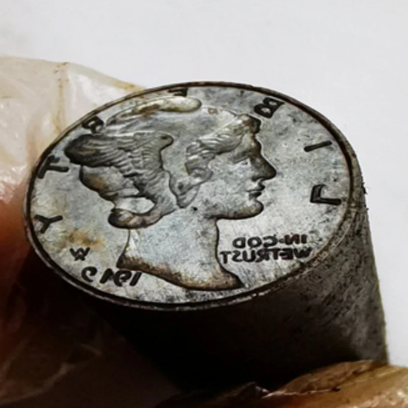 Imagine owning a finely crafted metal mold that reproduces the iconic design of the U.S. Mercury Dime. Crafted from durable metal, this antique-style mold features an intricate embossed face resembling the original coin, complete with detailed imagery of Liberty's winged head and surrounding inscriptions like “UNITED STATES OF AMERICA” and “DIME.” Available in four distinct dates—1916, 1920, 1924, and 1942—each mold captures a patriotic essence with high-relief craftsmanship. Its textured, metallic surface exudes vintage charm, perfect for collectors or artisans aiming to create authentic coin replicas or artistic projects. Visualize this finely detailed piece enhancing your collection or craft, showcasing meticulous relief work and patriotic symbolism that remains timeless. Specify your preferred date at purchase to receive the exact mold that embodies your historical interest.