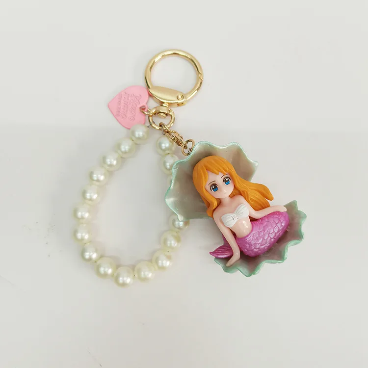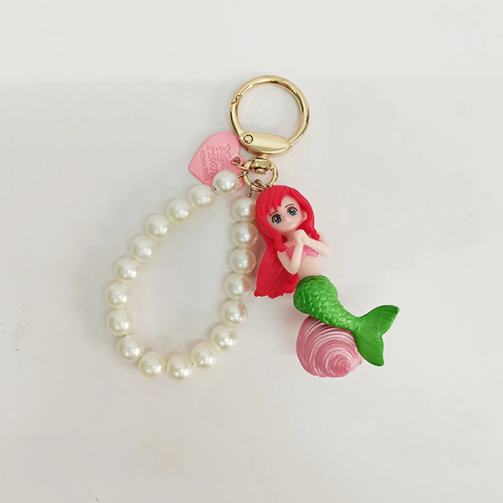 Imagine adding a playful yet elegant touch to your accessories with this charming mermaid keychain. Crafted from vibrant acrylic, it features a cute mermaid princess sitting inside a pastel-colored clam shell, accented by a shimmering pink tail and long flowing hair in shades of brown, yellow, red, or pink. The mermaid’s joyful expression, large blue eyes, and white seashell bikini top evoke innocence and fantasy. Attached to her is a glossy, heart-shaped pearl chain, adding a delicate and luxurious feel. The shiny gold-colored zinc alloy carabiner makes it easy to clip onto bags or keys, creating a whimsical yet sophisticated look perfect for daily use or as a thoughtful gift, especially during Christmas.