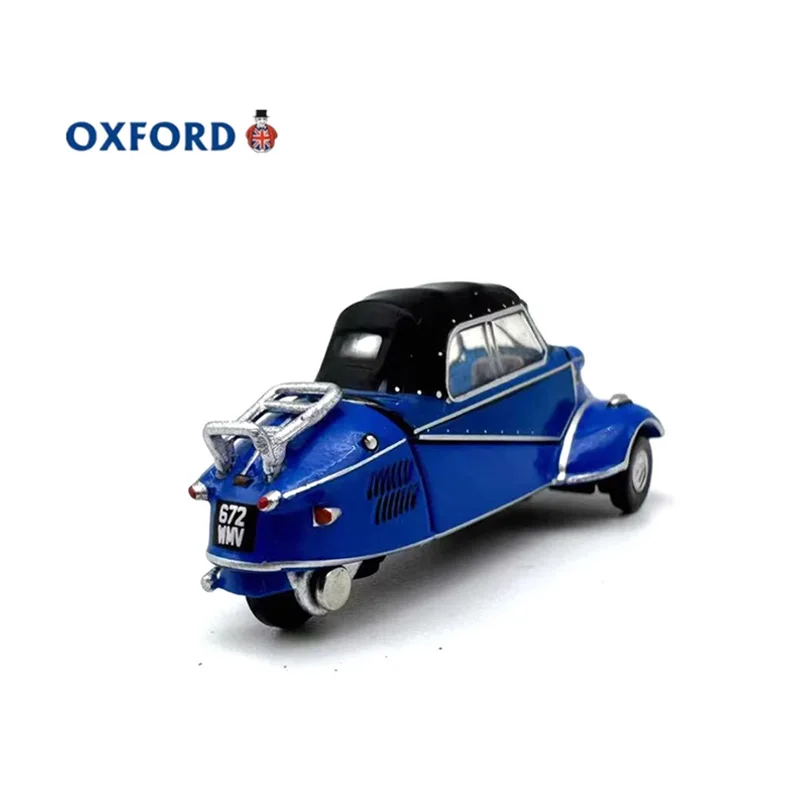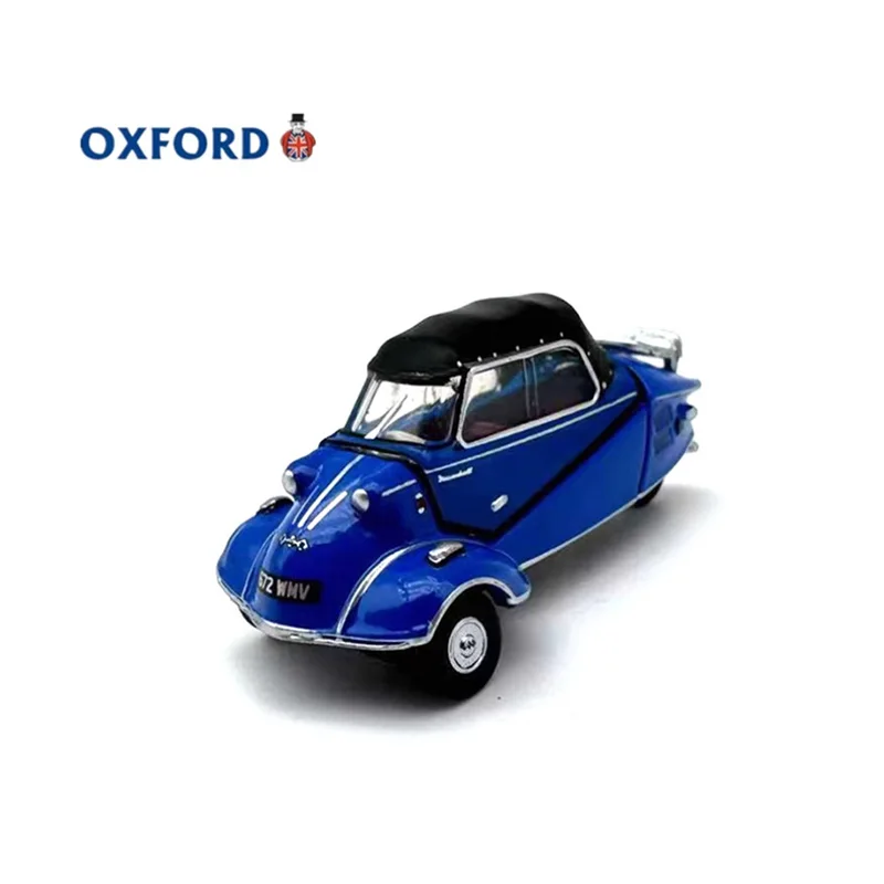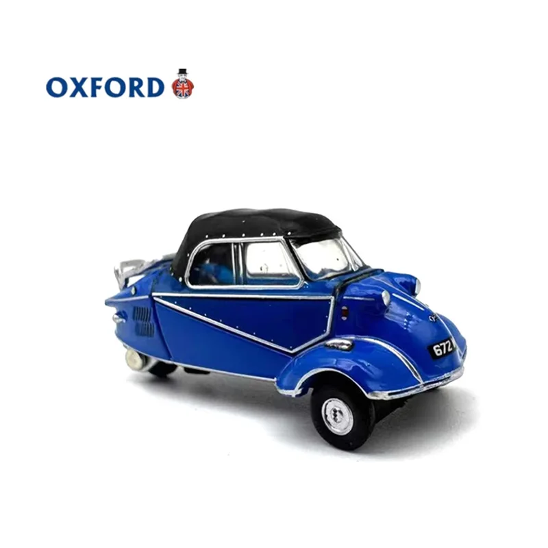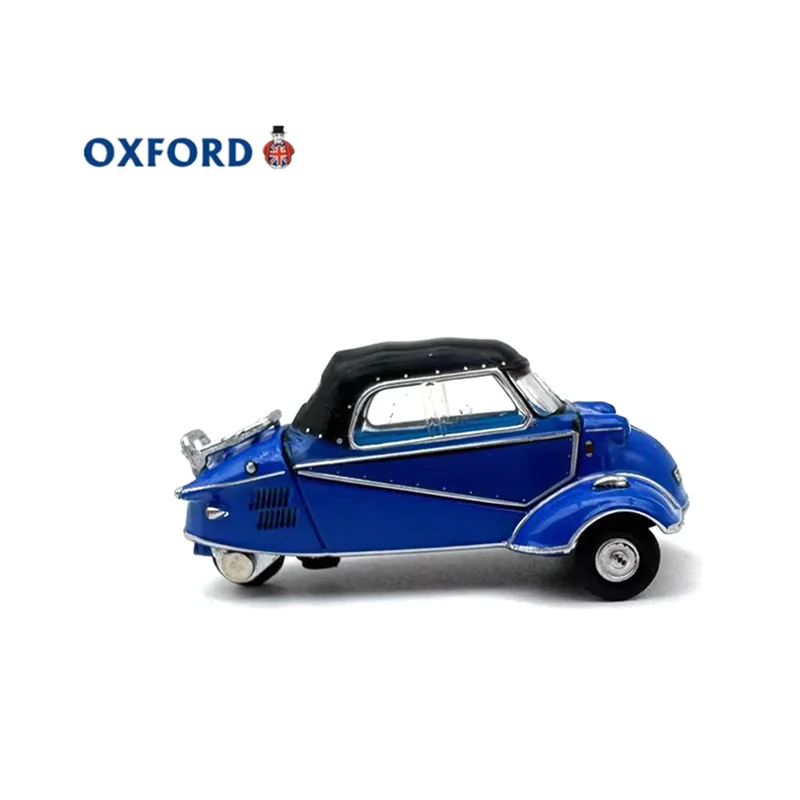 This detailed diecast model captures the iconic Messerschmitt Kr200 alloy bubble car at a 1:76 scale, measuring approximately 3.6 cm in length, 1.6 cm in width and height. Crafted from alloy, it features a vibrant glossy blue finish, with distinct design elements including a streamlined, rounded body, curved front with integrated headlights, silver detailing on side panels, a black roof, and small black wheels with hubcaps. Perfect for display, this static collectible is suitable for enthusiasts aged 14 and above, offering a charming vintage-inspired aesthetic that highlights the unique, playful design of this classic microcar.