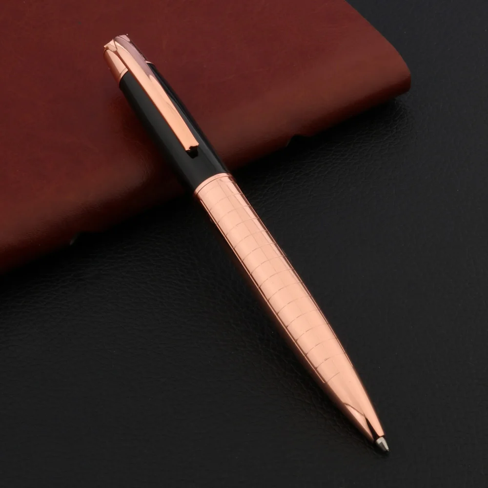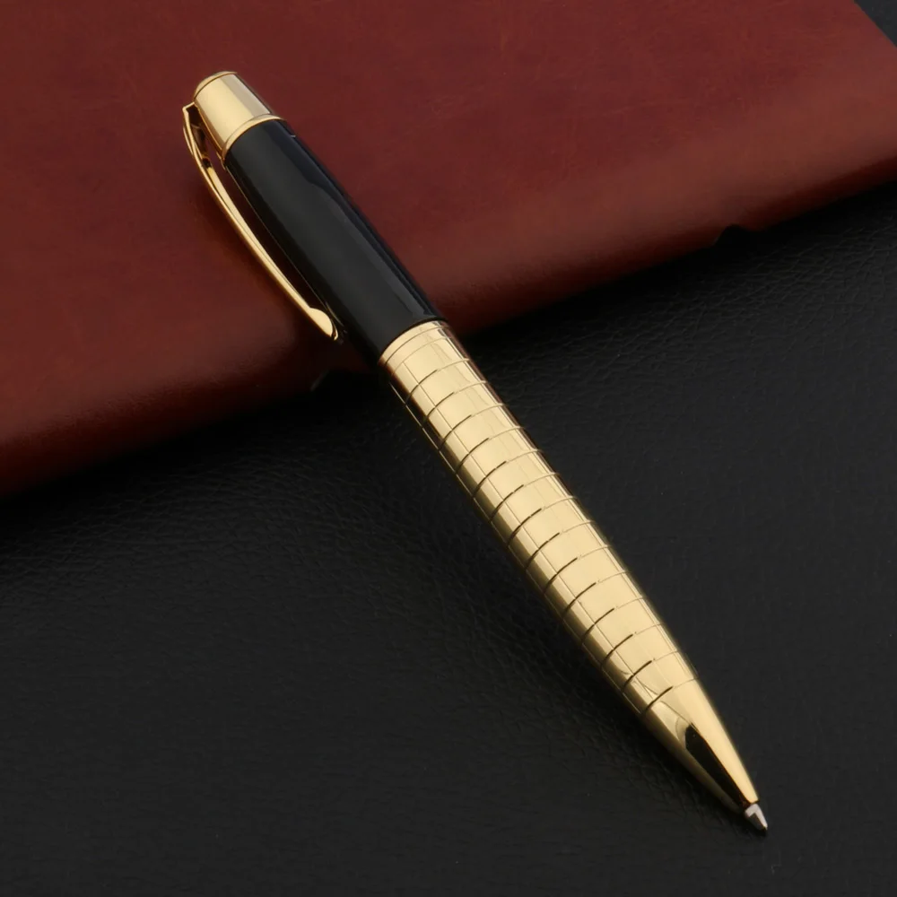 Experience the perfect blend of style and functionality with this premium metal ballpoint pen, model 022. Designed for professionals and students alike, it boasts a sleek black body, complemented by metallic accents, creating a modern and sophisticated appearance. Its durable metal construction ensures longevity, ideal for everyday use in office, school, or on-the-go scenarios. The pen features a fine 1.0mm ballpoint tip that delivers smooth, precise writing in various colors, including red, golden, blue, rose golden, gray, and classic black. The ergonomic design with decorative horizontal lines on the grip provides comfort and adds visual appeal. This pen not only enhances your writing experience but also elevates your stationery collection with its refined aesthetic.