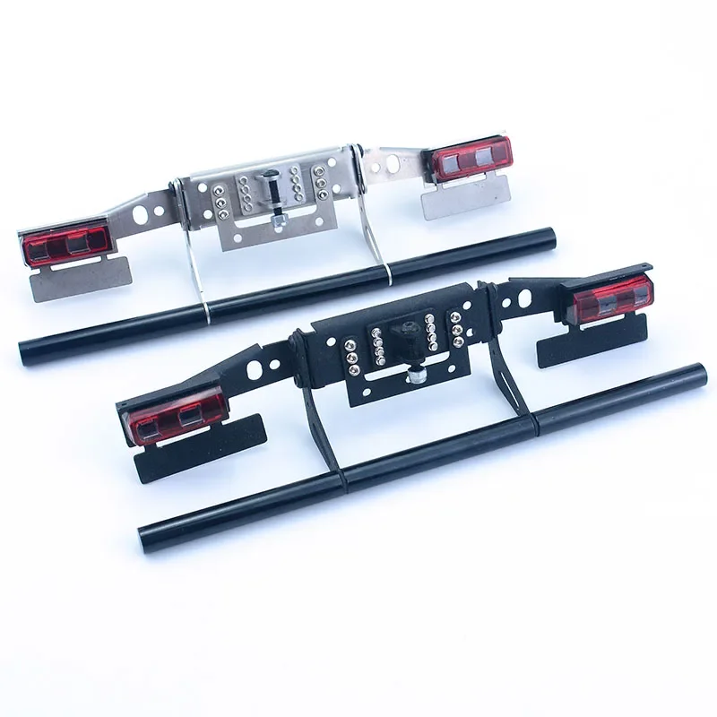 Enhance the realism of your 1/14 scale RC truck with this durable metal bumper and taillight beam set, compatible with Tamiya models such as SCANIA 770S R620, Benz Arocs, and MAN TGX. Available in sleek silver or matte black, this assembled set features a rectangular open-frame design with precise mounting points, vibrant red taillights with transparent lenses, and a streamlined cylindrical bar for added detail. Crafted from rugged metal, it provides a sturdy, authentic look for four-wheel drive vehicles, elevating both style and durability for your custom RC truck. Ideal for hobbyists aged 14 and above, this upgrade piece seamlessly blends function and realism.
