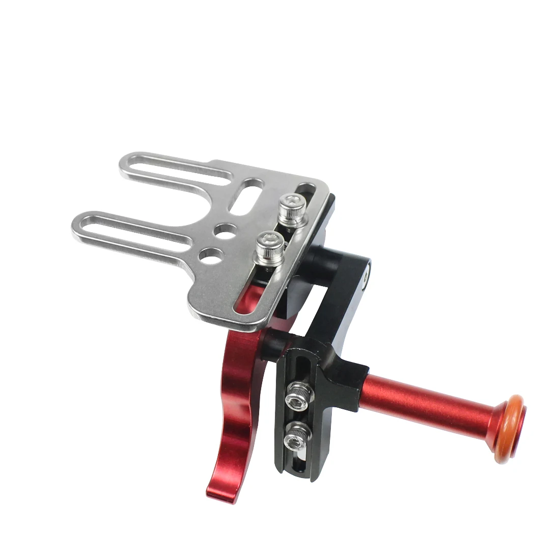 Enhance your underwater photography experience with this meticulously designed metal shutter trigger extension lever mount adapter. Crafted from durable aluminum, it combines lightweight strength with corrosion resistance, perfect for diving and snorkeling adventures. The adapter’s modern aesthetic features polished silver surfaces contrasted by vivid red accents and black components, creating a visually striking yet highly functional tool. Its white spherical connector adds a minimalist touch, while the elongated red arm with a textured orange rubber grip ensures precise control and comfort during use. Easy to install, this adapter seamlessly integrates with various DSLR and action camera models, providing stable, steady footage even in challenging aquatic environments. Elevate your underwater captures today with this reliable, stylish accessory.