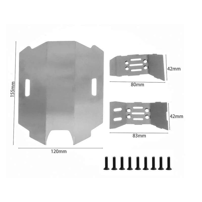 Step up your RC experience with this precisely crafted metal chassis armor designed specifically for the 1/16 scale ARRMA Mojave Grom. Its sleek, silver metallic finish offers a modern industrial aesthetic, giving your RC car a more realistic and rugged appearance. The flat, angular main plate features smooth, elongated oval cutouts for optimal ventilation and a streamlined look. Additional smaller protective components, with curved contours and fine slots, provide tailored coverage while emphasizing durability. As an enthusiast, you'll appreciate how these upgrade parts blend style with practical protection, ensuring your RC vehicle withstands rough terrains and active use. This set elevates your model’s visual appeal and performance, enabling you to enjoy a more immersive experience.