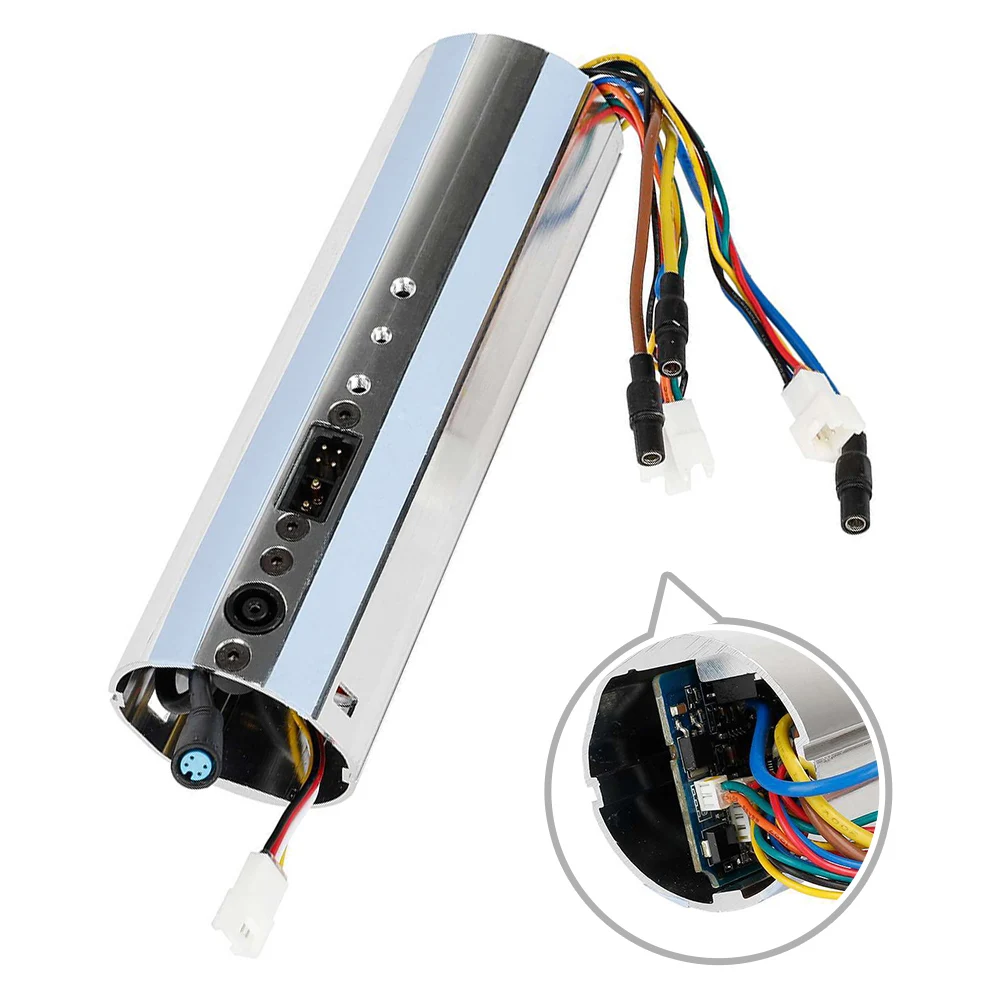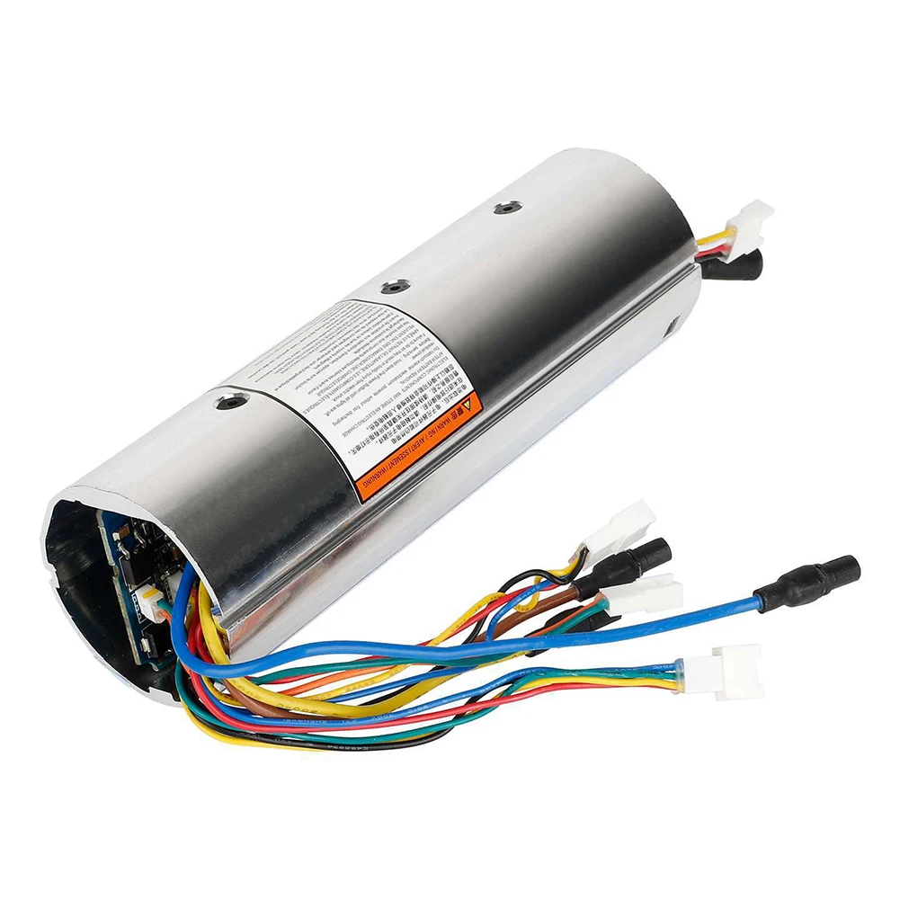 Experience the seamless upgrade with this high-quality metallic dashboard circuit control board, designed specifically for Ninebot E22 and E25 electric scooters. Its polished silver finish and rounded rectangular shape give it a modern and refined look, blending aesthetics with functionality. The cylindrical casing with an open end not only improves accessibility but also reveals embedded electronic components, highlighting its technical precision. The compact wires—yellow, red, and black—extend neatly from the casing with a black protective cover, ensuring durability and ease of installation. Weighing only about 270 grams, this control board provides a lightweight yet robust solution for scooter enthusiasts seeking reliable performance and an organized, sleek appearance.