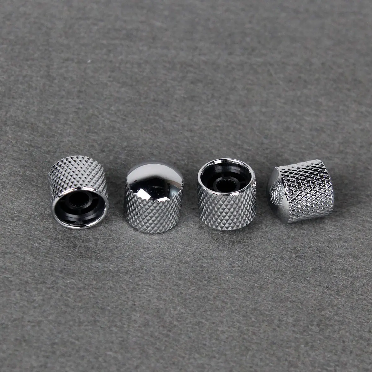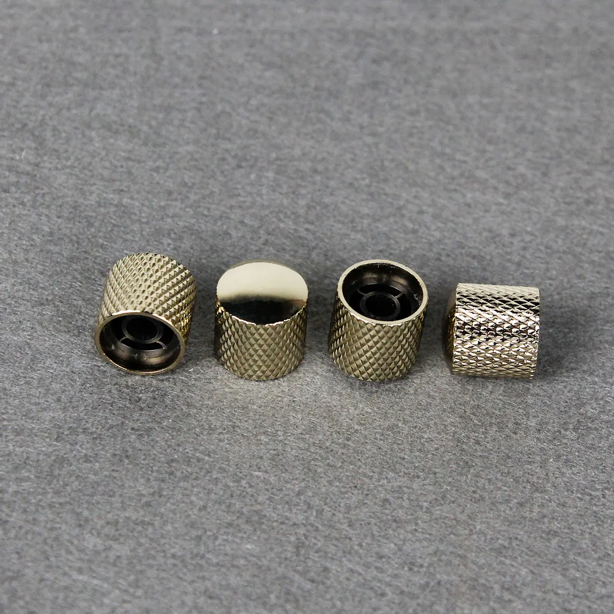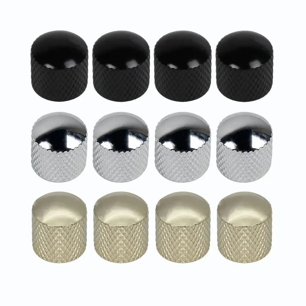 Experience a sleek upgrade with this set of four high-quality metal dome-shaped control knobs, designed specifically for electric bass guitars. Each knob features a shiny, durable metallic finish available in black, chrome, and gold, adding a touch of sophistication to your instrument. The classic dome shape with a smooth, rounded top and textured sides ensures a comfortable grip while enhancing your control over volume and tone. Made from premium metals with real plating, these knobs are built to last and resist tarnishing. They fit onto standard 6mm split shaft potentiometers, ensuring universal compatibility. Whether you're replacing worn-out knobs or customizing your bass, these control knobs elevate both form and function in your setup.