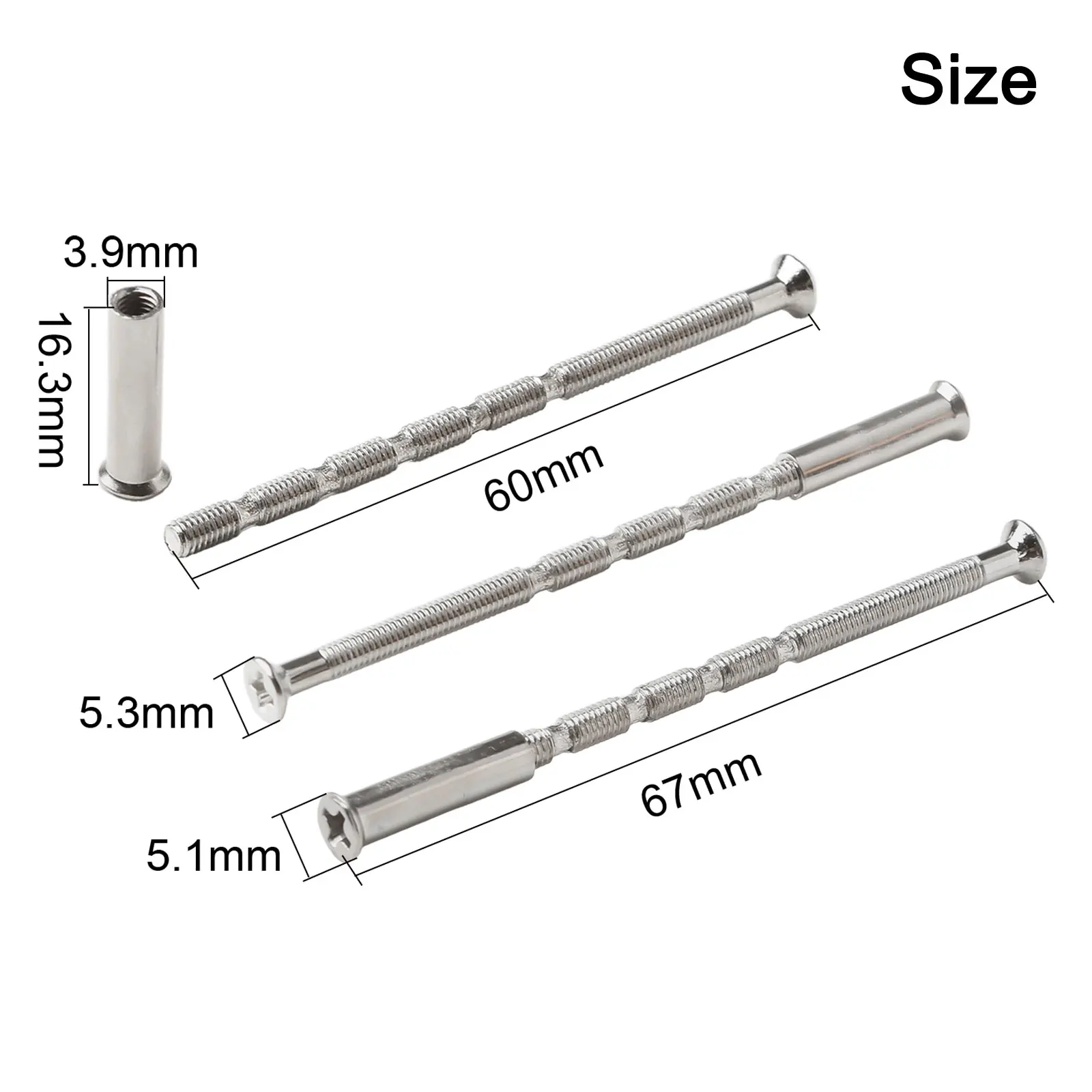 Experience the perfect combination of durability and elegance with this set of 25 metal door handle fixing screws. Crafted from high-hardness carbon steel, these screws feature a sleek nickel-plated finish that resists wear and corrosion. Each screw measures M3 x 60mm, with a total tightening length of 67mm, designed to fit door thicknesses between 35-60mm. The set includes matching M3 x 16mm sleeves to ensure a versatile and secure fit for various hardware applications. The rounded, flat heads provide a minimalistic aesthetic, ideal for both residential and commercial settings. With easy customization, you'll achieve a professional finish every time, making installation straightforward and reliable. Enhance your door, drawer, or handle installation with confidence using this high-quality hardware set.