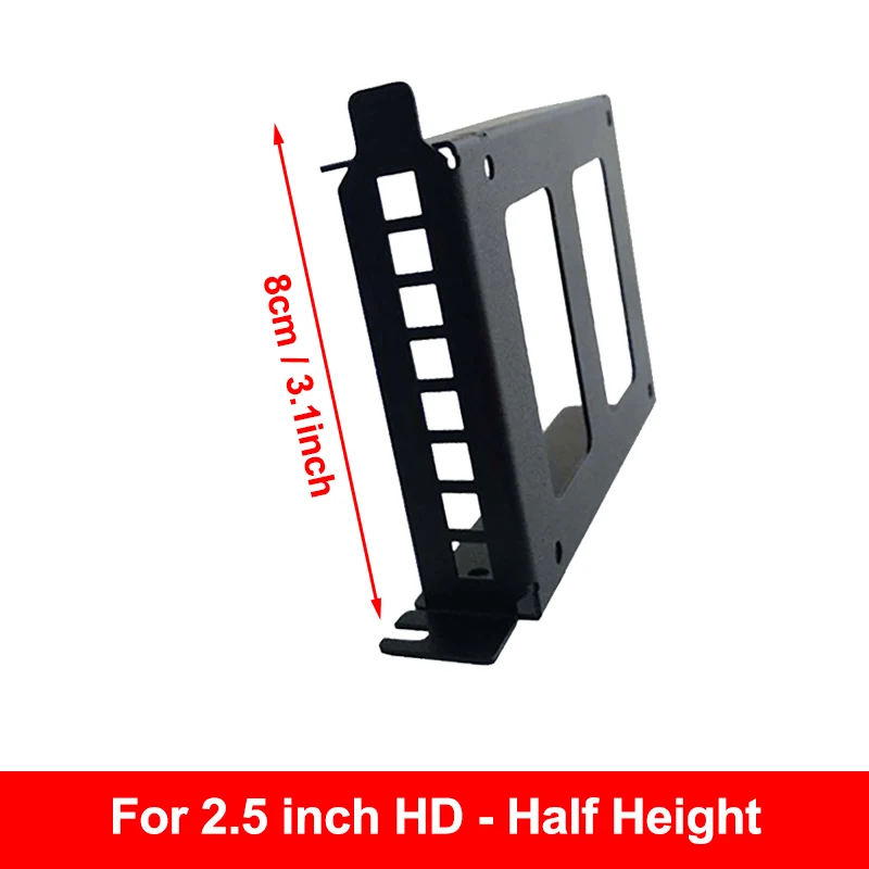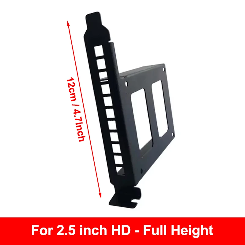 Customize your computer setup effortlessly with this sturdy metal mounting bracket designed for 2.5-inch and 3.5-inch SSD and HDD drives. Crafted from durable metal with a sleek matte finish, it offers a professional, industrial look that blends seamlessly into any PC case. Its rectangular shape with supporting arms ensures easy installation into PCI expansion slots, maximizing your system's space and performance. The vented design with multiple cutouts promotes efficient airflow, helping maintain ideal operating temperatures. With compatibility for drives measuring 2.5″ (8cm and 12cm) and 3.5″ (12cm), it’s perfect for enthusiasts seeking a clean, organized, and high-performance system. Carefully engineered for stability, this bracket enhances your desktop’s appearance while improving cooling efficiency.