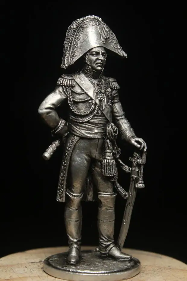 Imagine adding a touch of historical elegance to your space with this meticulously crafted metal figurine of Marshal Louis Nicolas Davout, a distinguished figure from the French Revolution era. Standing approximately 60mm tall, this 1/30 scale model exudes realism with its intricate design and silver-like finish. Made from tin metal, it captures the commanding presence and dignified stance of a high-ranking military leader. The figurine features a highly detailed uniform, with an embossed bicorne hat, epaulets, medals, waist sash, and side-mounted sword, all emphasizing craftsmanship and authenticity. With a commanding posture and fine refinements, this piece is perfect for collectors, historians, or anyone who appreciates European military history. Personalize it with DIY coloring to match your decor or style.